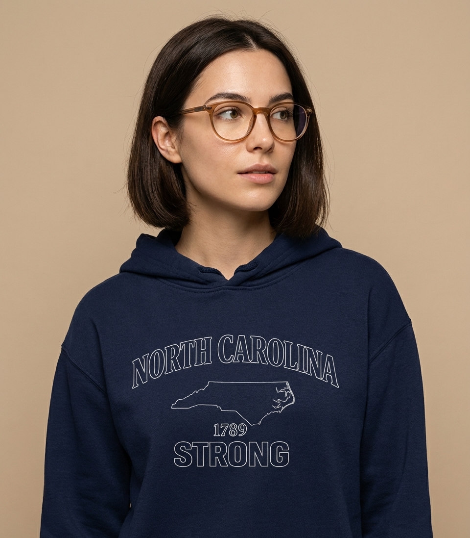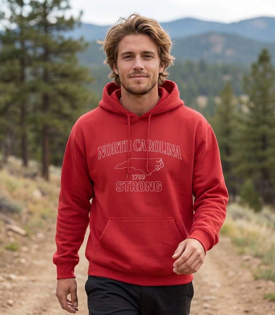 The 'North Carolina Strong' phrase captures the lifestyle of passionate North Carolinians who celebrate their state's history, cherish its diverse landscapes, and embody its resilient spirit.