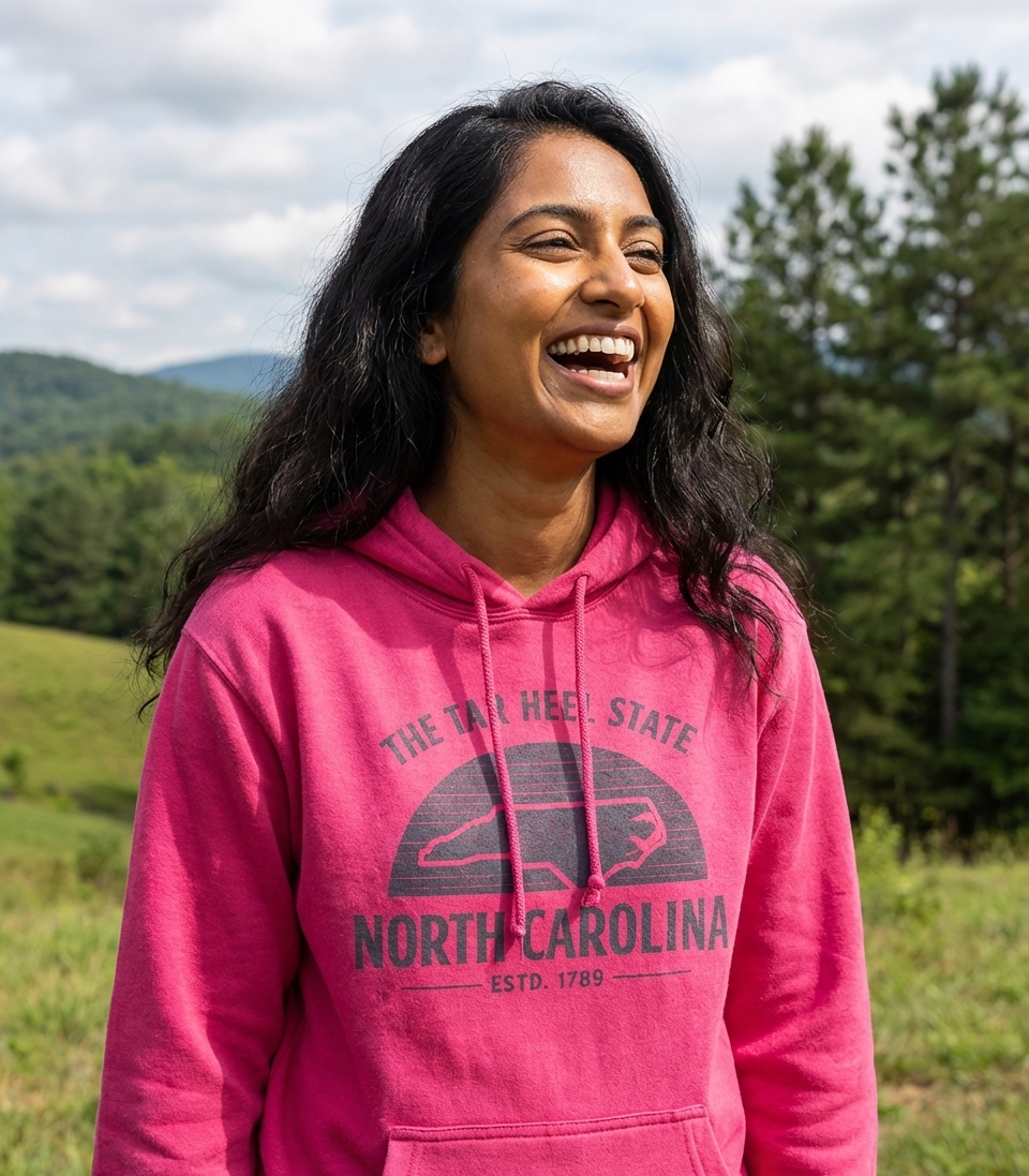 Yes! Check the style selector above to see all available options including hoodies and sweatshirts for the North Carolina Tar Heel State graphic.