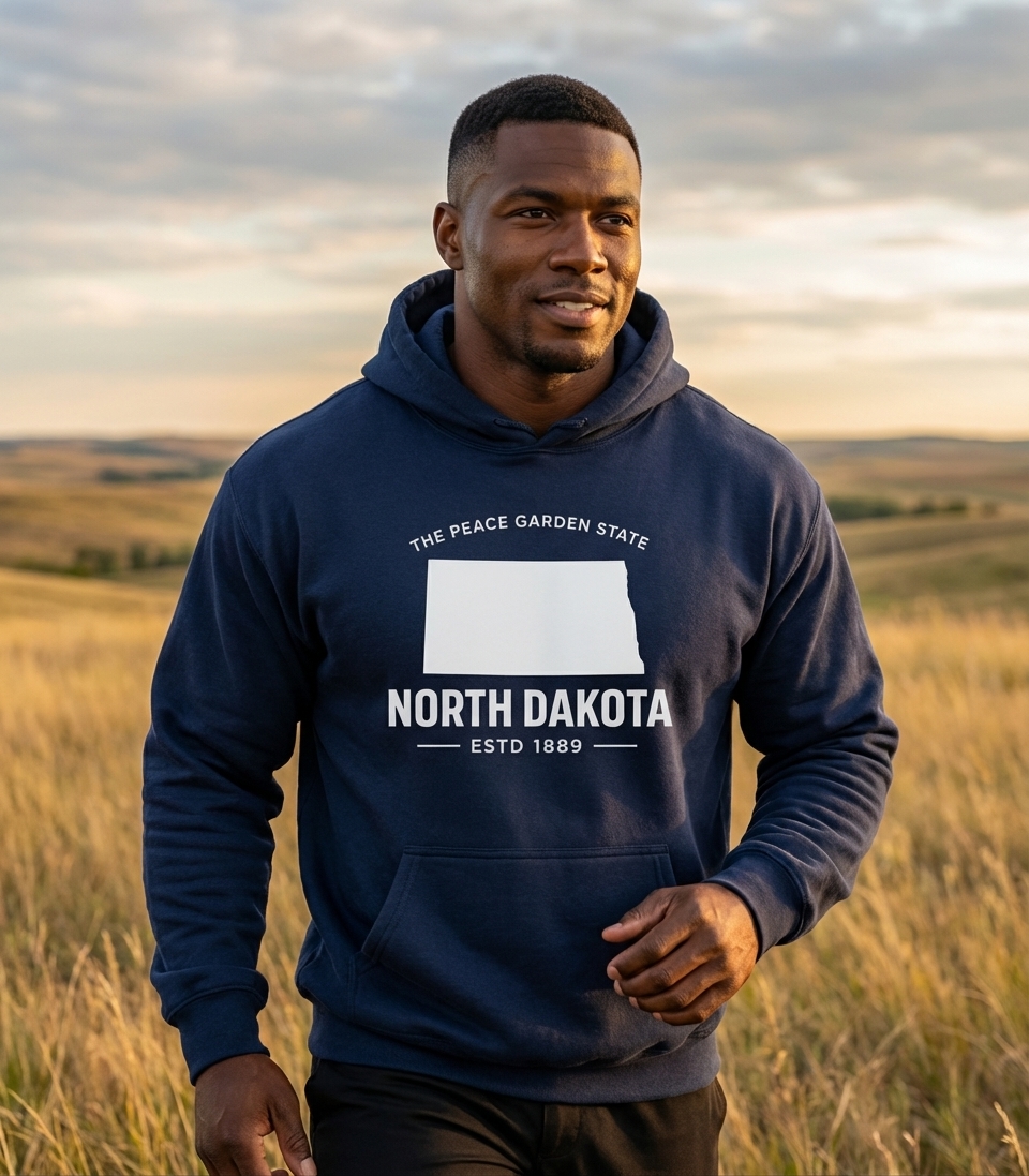 This "Peace Garden State" design captures the spirit of proud North Dakotans who appreciate their state's history, natural beauty, and unique identity.