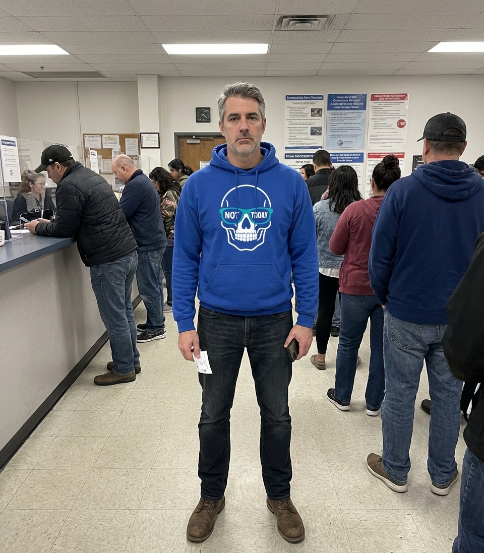 This graphic features a stylized skull wearing cool turquoise sunglasses, prominently displaying the humorous phrase "NOT TODAY". It’s designed for individuals who appreciate a laid-back attitude and a touch of playful defiance in their daily lives.