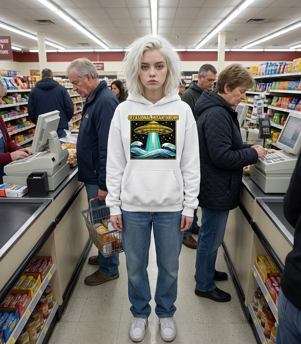 Yes! Check the style selector above to see all available options including hoodies and sweatshirts for the Occasional Misanthrope UFO graphic.