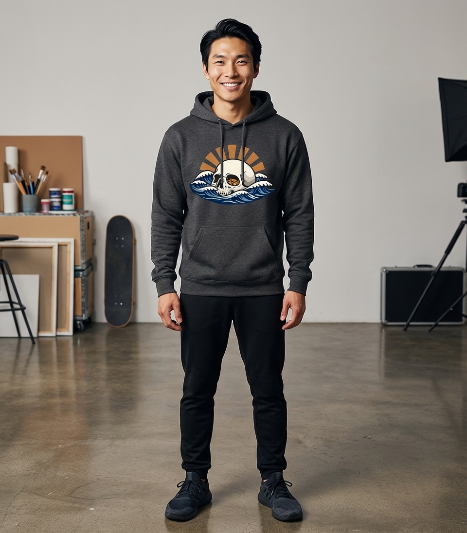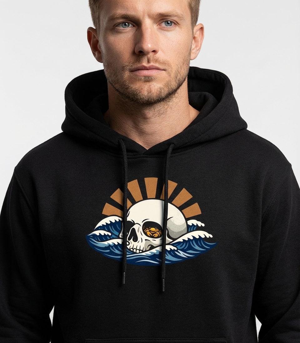 Yes! Check the style selector above to see all available options including hoodies and sweatshirts for the Ocean Skull Sun graphic.
