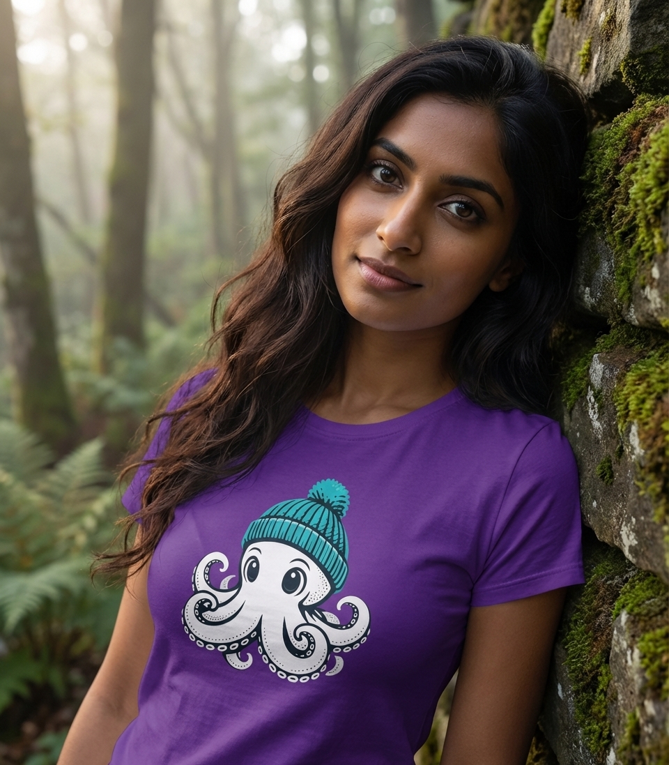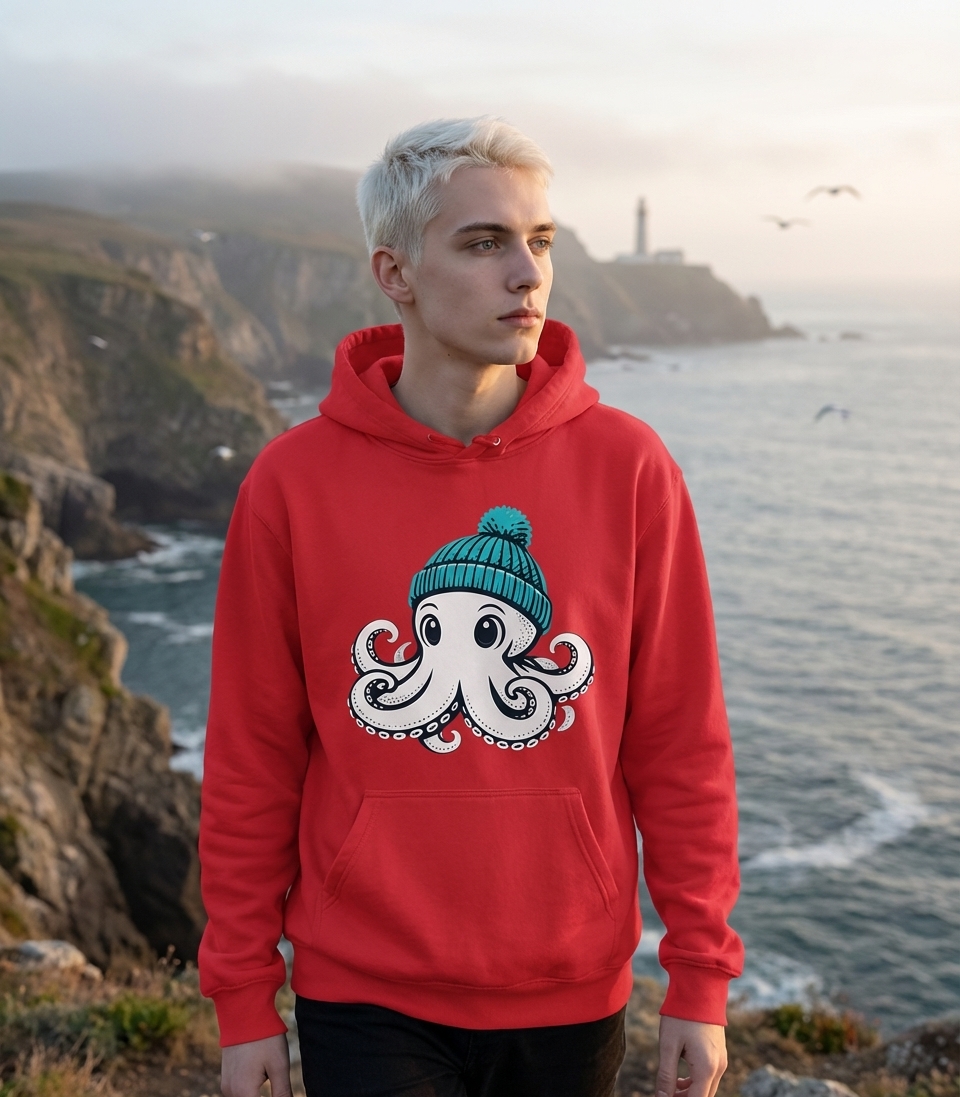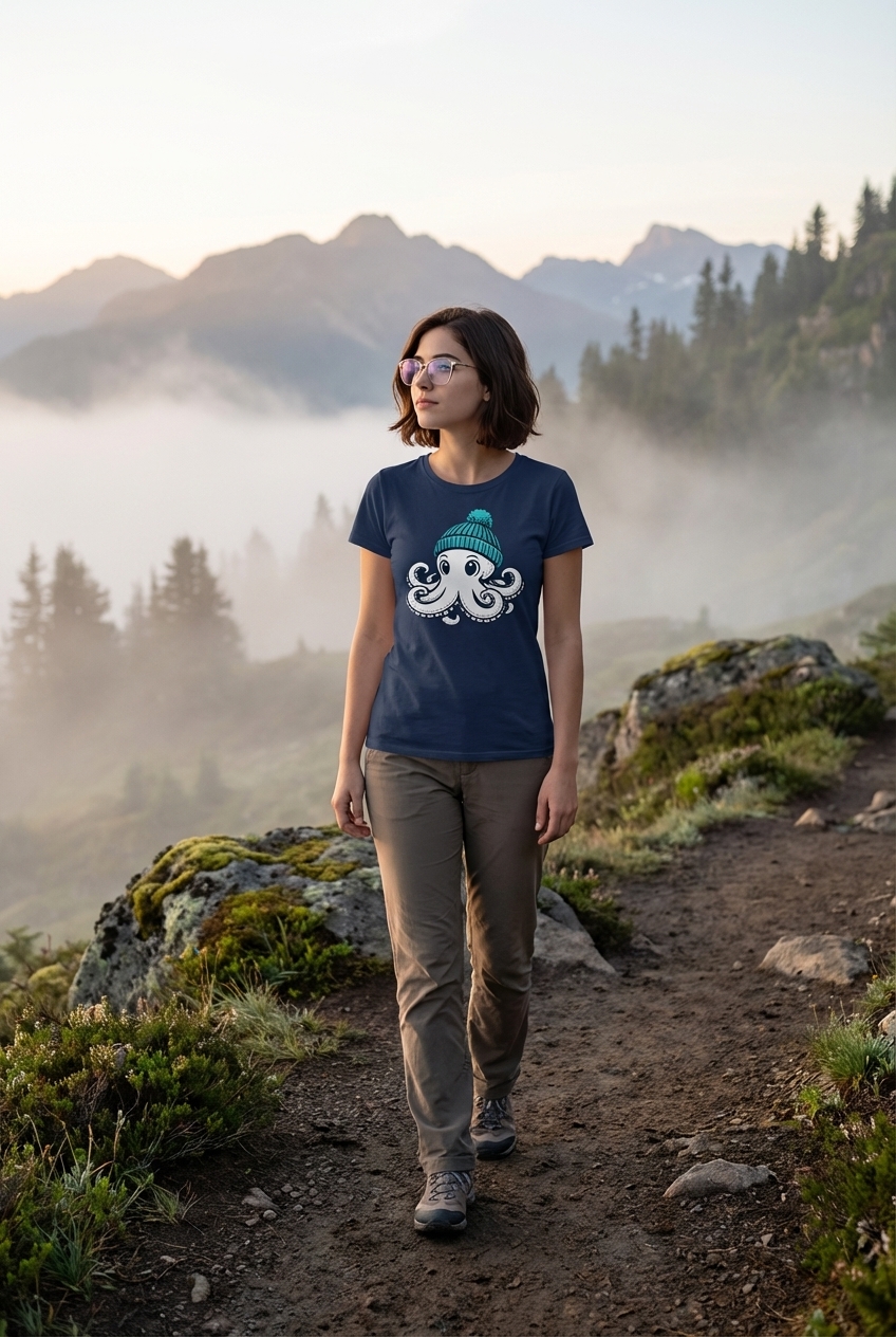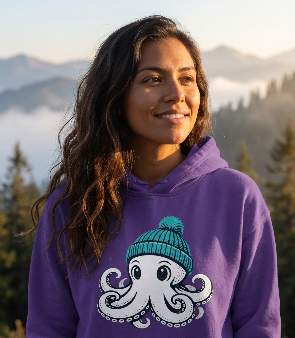 The charming octopus with a beanie captures the playful spirit of marine enthusiasts who enjoy unique animal designs, cool weather vibes, and fun graphic art.