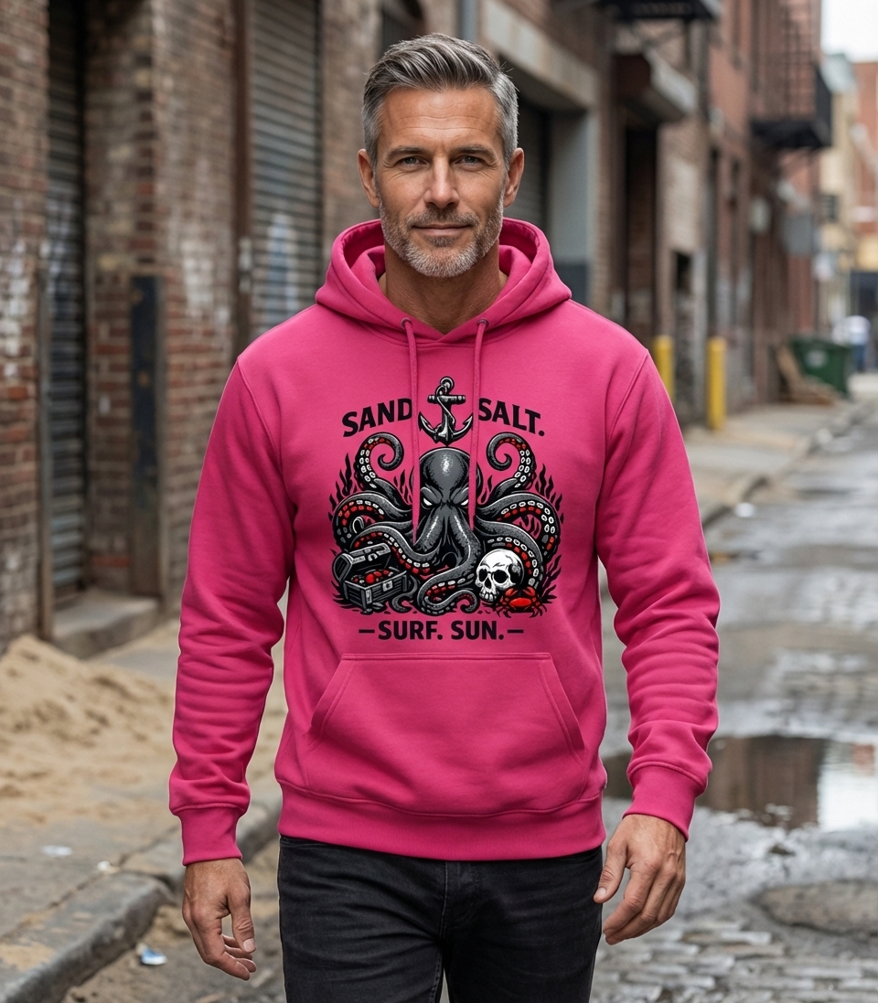 Yes! Check the style selector above to see all available options including hoodies and sweatshirts for the Octopus Sand Salt Surf graphic.