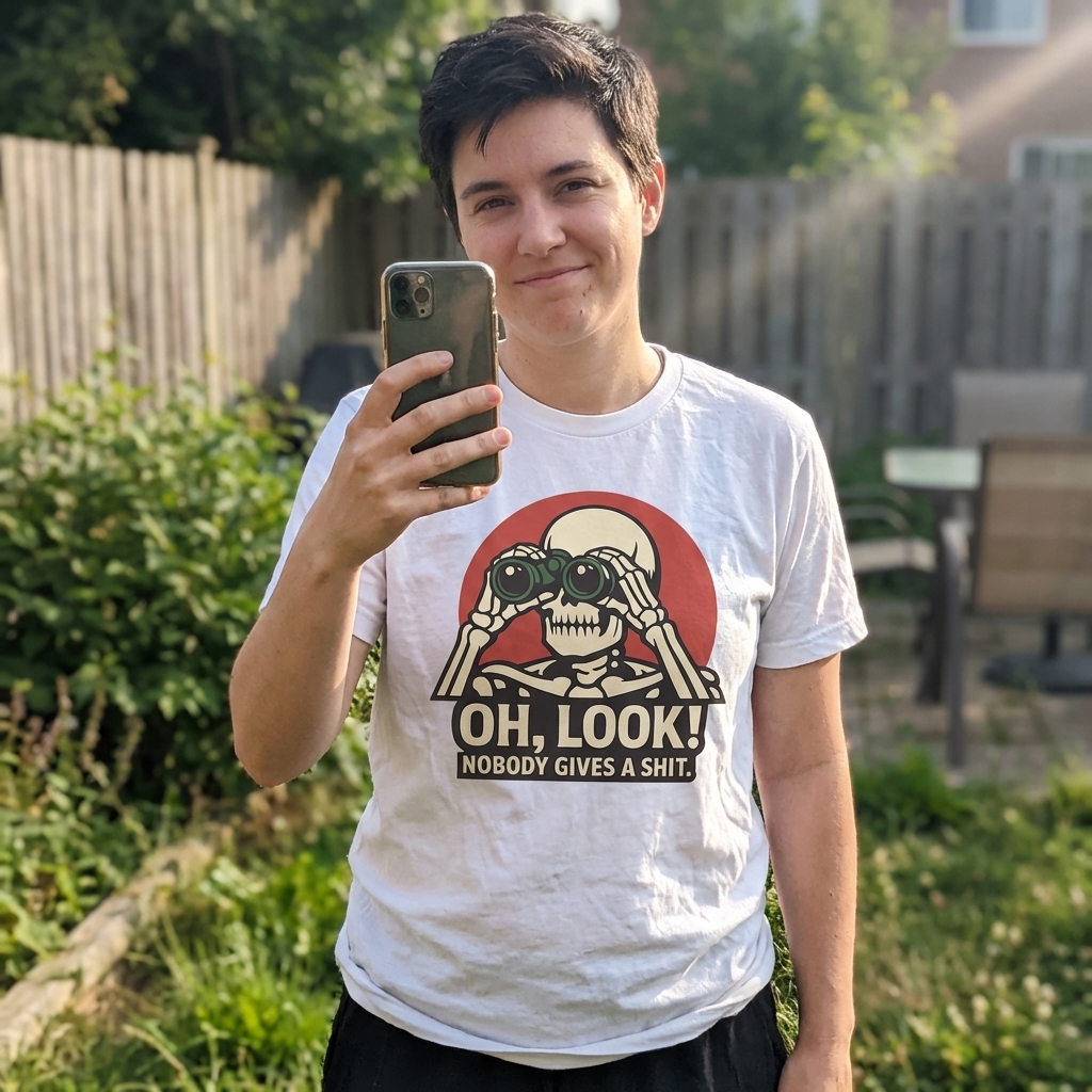 Okay, seriously love this tee. The "oh look no shits" vibe is just perfect for my mood lately, and honestly, it's super comfy too. Definitely gonna wear this one a lot.