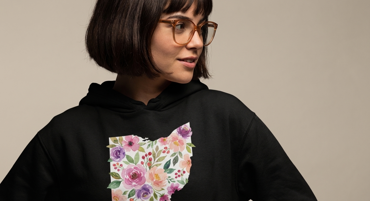 The phrase "Ohio Floral Map" directly describes the visual concept of the design, symbolizing the harmonious blending of state identity with soft, natural aesthetics. It serves as an artistic and gentle expression of pride in Ohio's landscapes, heritage, and unique character.