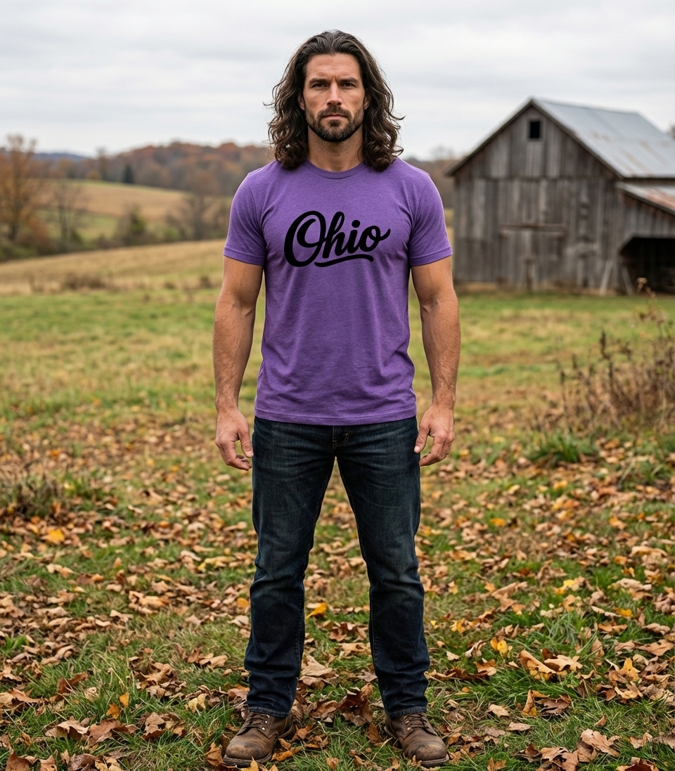The 'Ohio Script Outline' design captures the heartfelt pride of residents and fans who cherish their connection to the Buckeye State, its vibrant communities, and rich heritage.