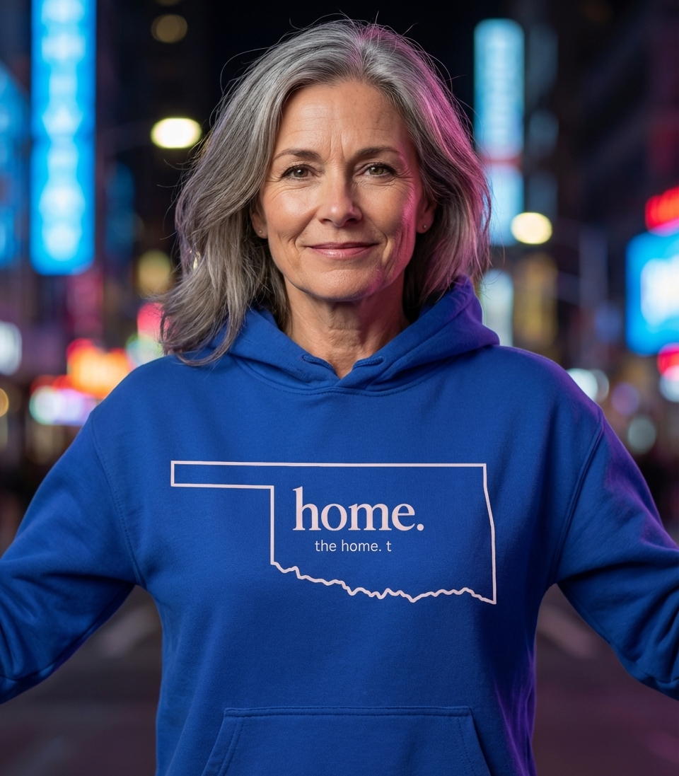 The "home." phrase captures the lifestyle of proud Oklahomans who cherish their roots, represent their state, and celebrate their heritage.