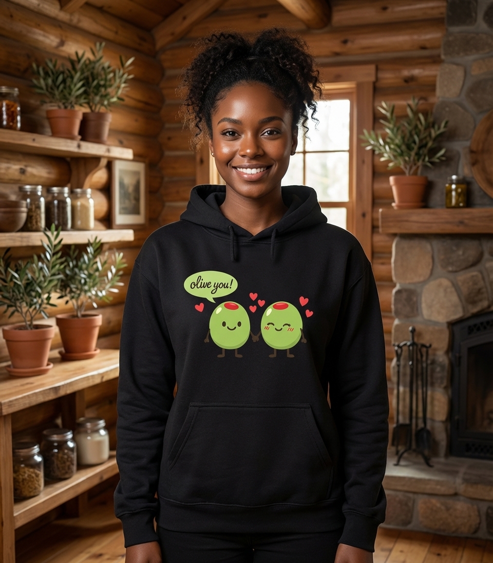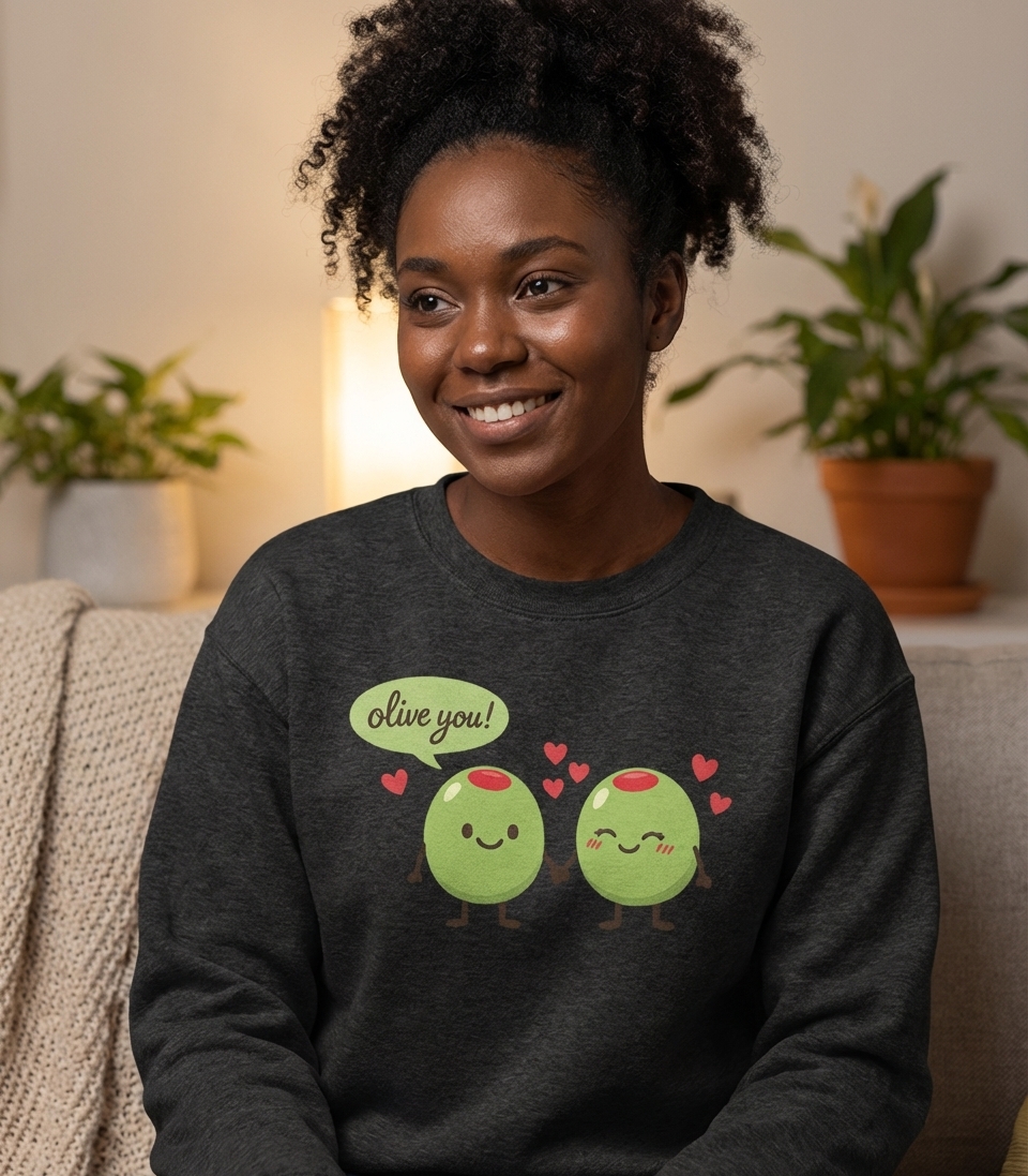 The 'Olive You' pun phrase captures the lifestyle of affectionate individuals who enjoy sharing whimsical jokes, celebrating love, and appreciating cute food art.