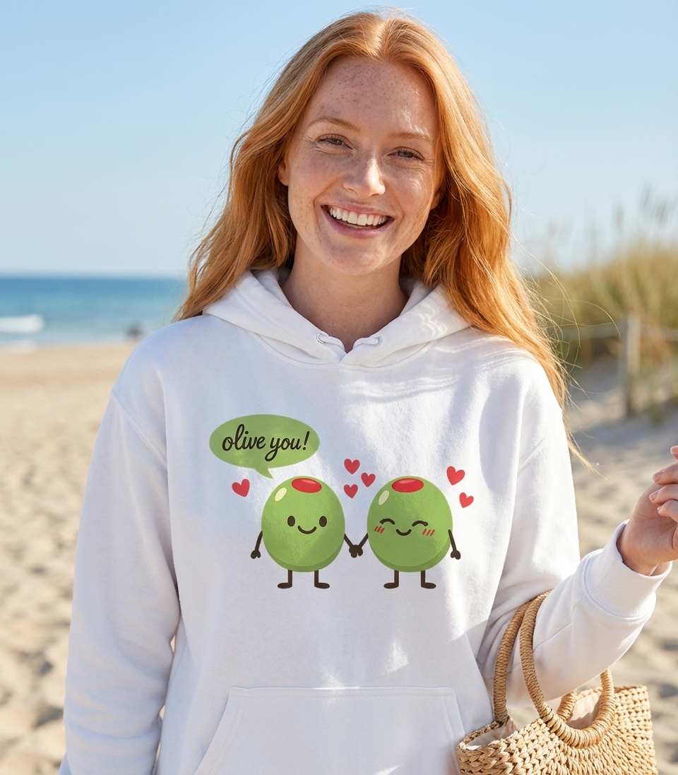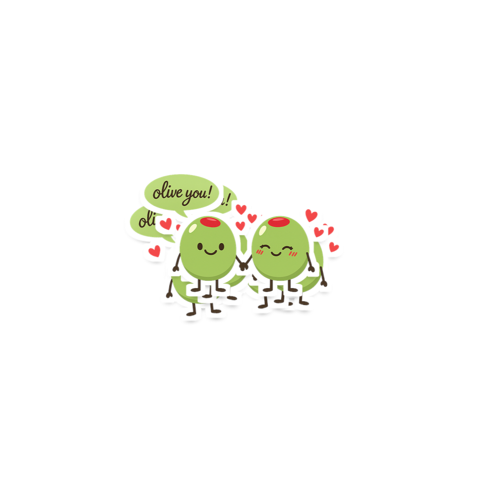 The phrase "olive you!" is a playful and clever pun on "I love you". It uses the name of the olive fruit to convey a sweet message of affection, making it a perfect expression for romantic partners, friends, or family members.