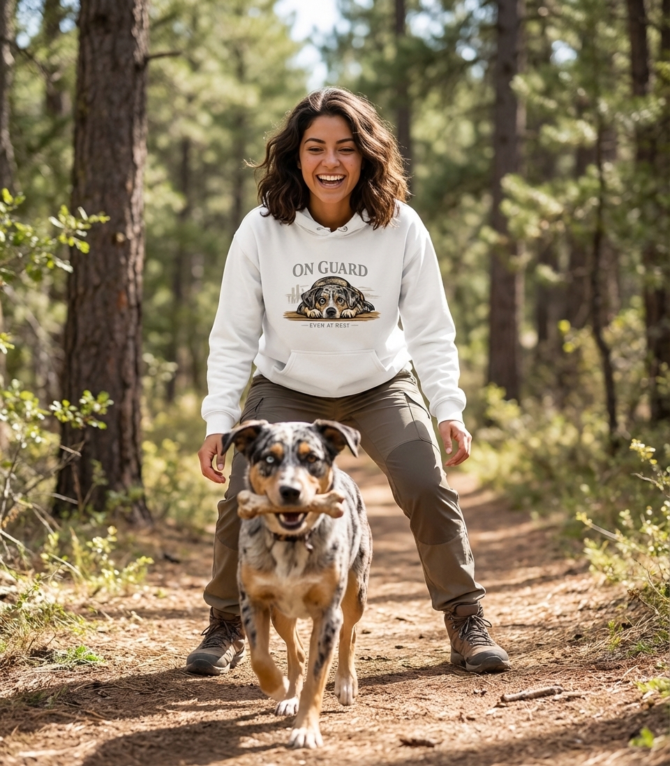 Yes! Check the style selector above to see all available options including hoodies and sweatshirts for the On Guard Dog graphic.