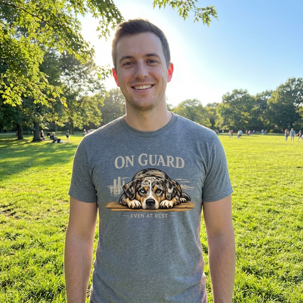 okay so i just got this "On Guard Dog" shirt and i actually really love it. The abstract design is way cooler in person, gives off a nice chill vibe without being boring. Shirt's comfy too, definitely a new favorite.