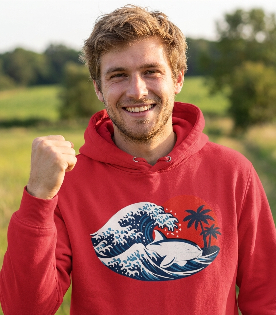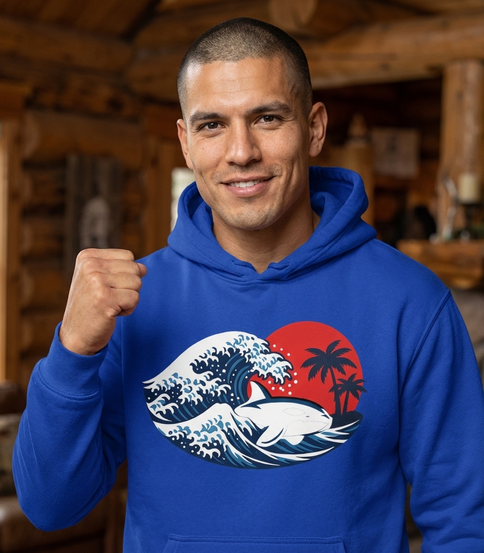 Yes! Check the style selector above to see all available options including hoodies and sweatshirts for the Orca Wave Sunset graphic.