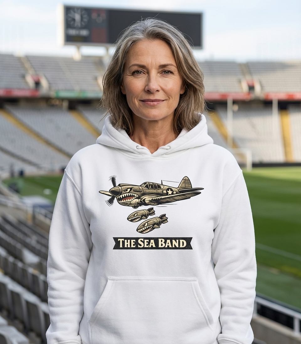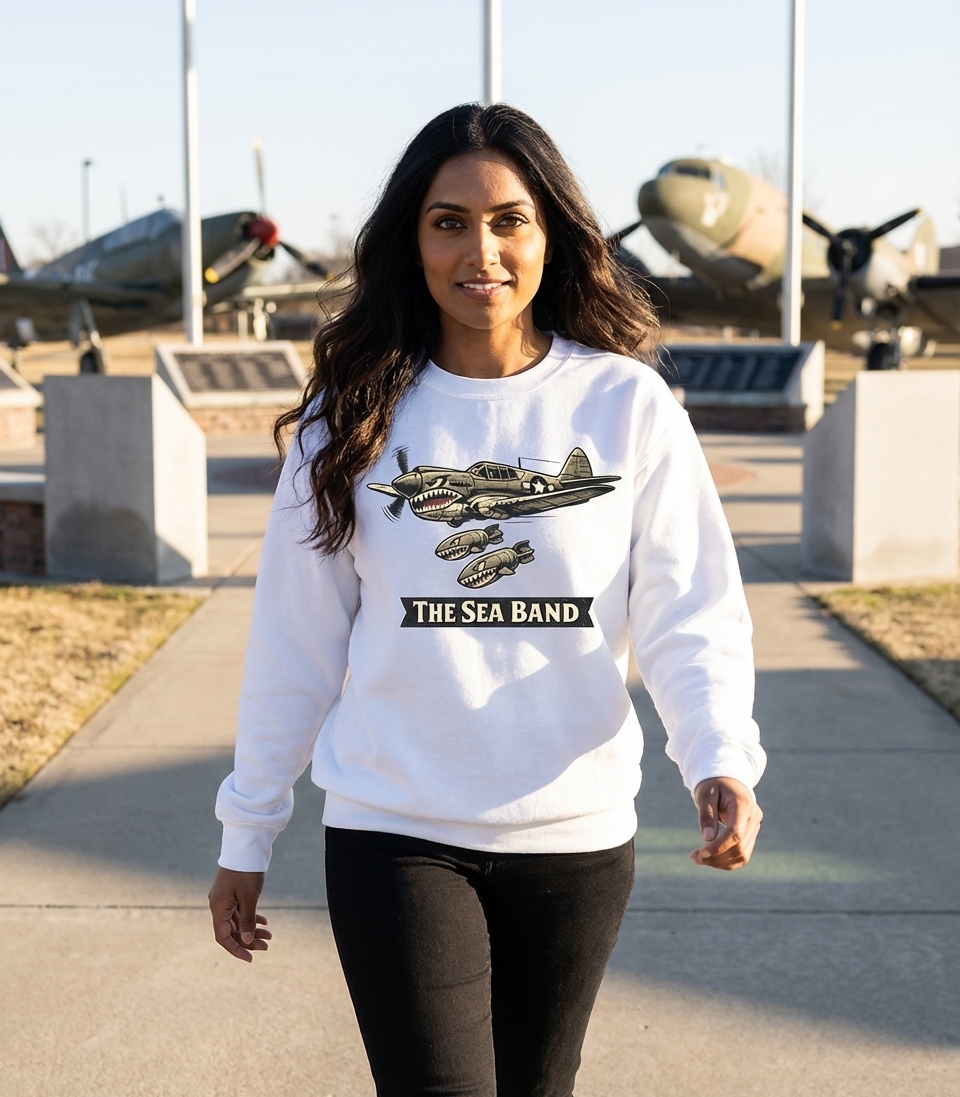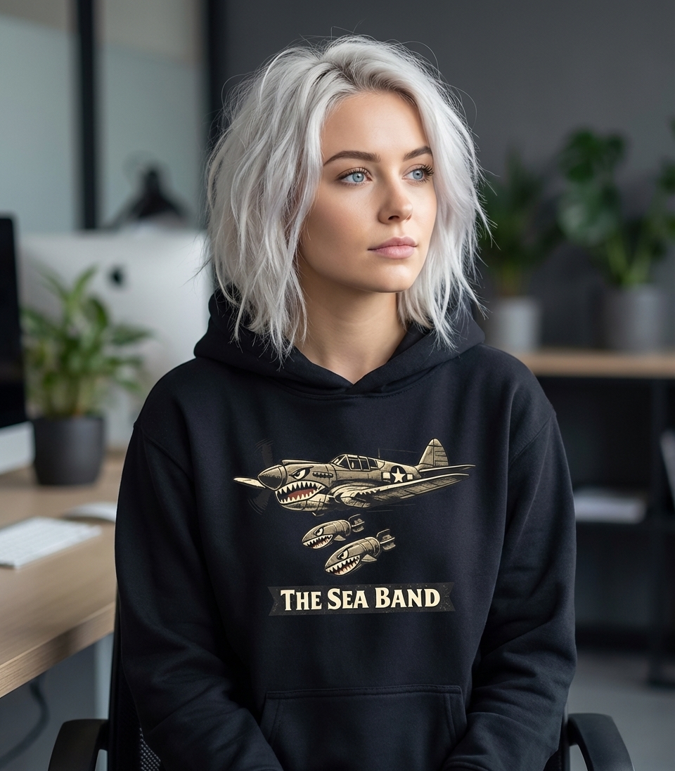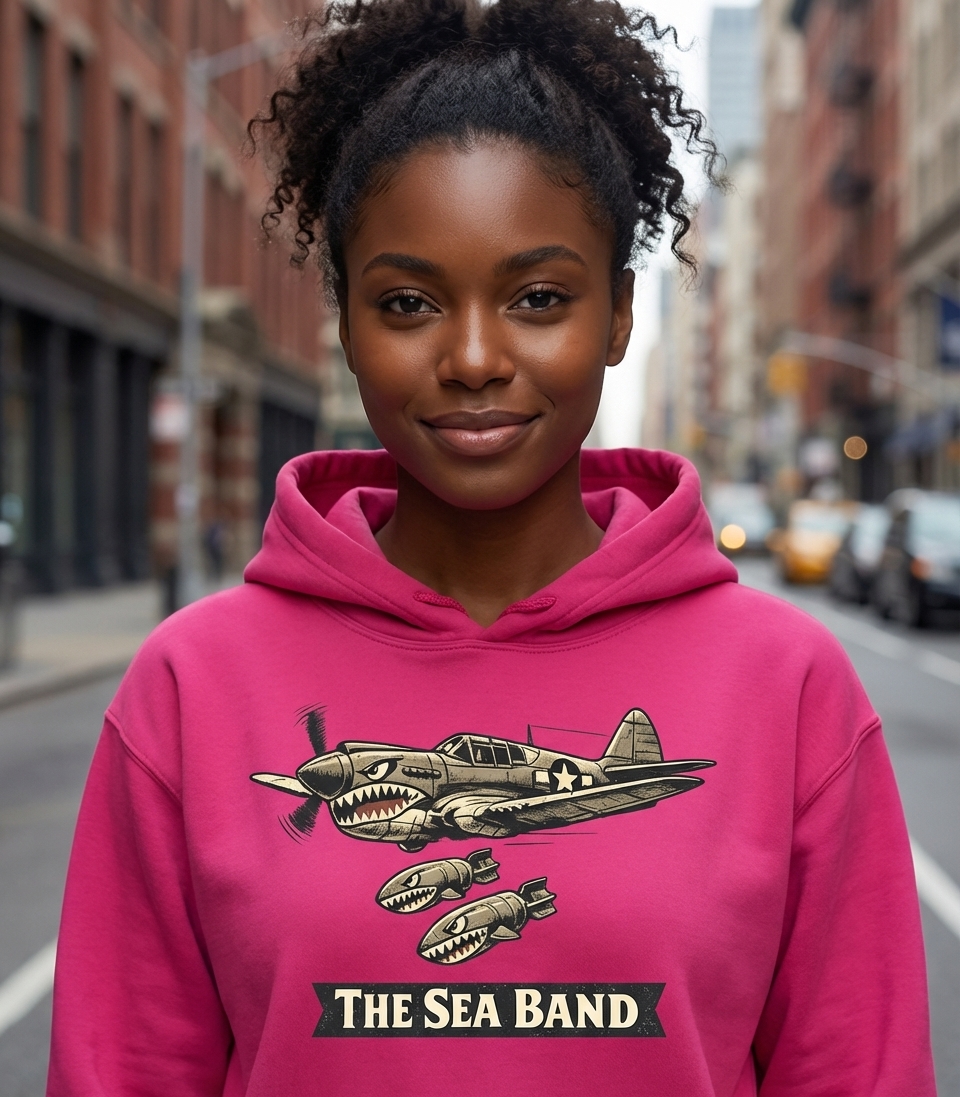 The phrase "The Sea Band" in this context is open to interpretation. It could refer to a musical group with a bold, military-inspired aesthetic, or perhaps a metaphorical "band" or squadron with a strong connection to naval themes or coastal operations, despite the P-40's Army Air Forces origins.