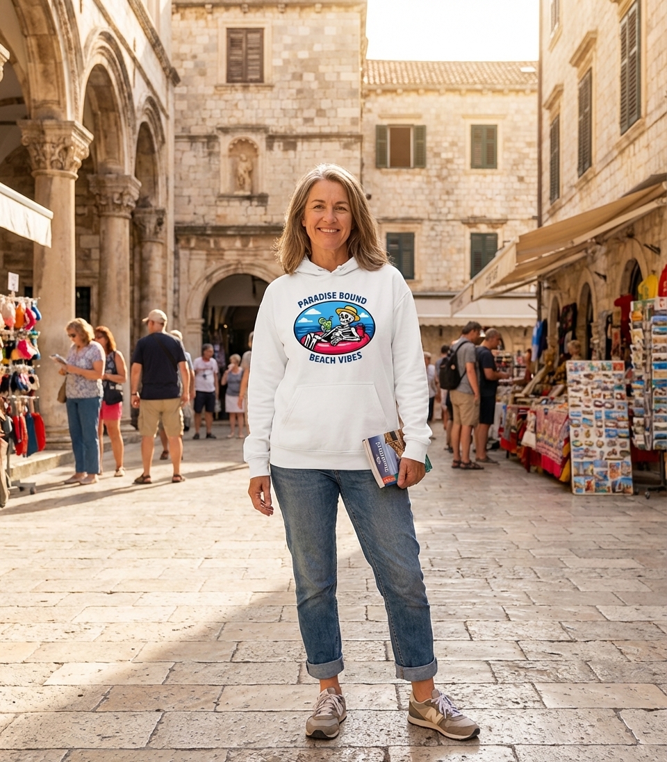 Yes! Check the style selector above to see all available options including hoodies and sweatshirts for the Paradise Bound Beach Vibes graphic.