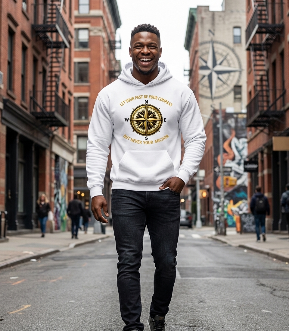 The 'Let your past be your compass but never your anchor' phrase captures the lifestyle of individuals who reflect on their journey, learn from experiences, and continuously move forward.
