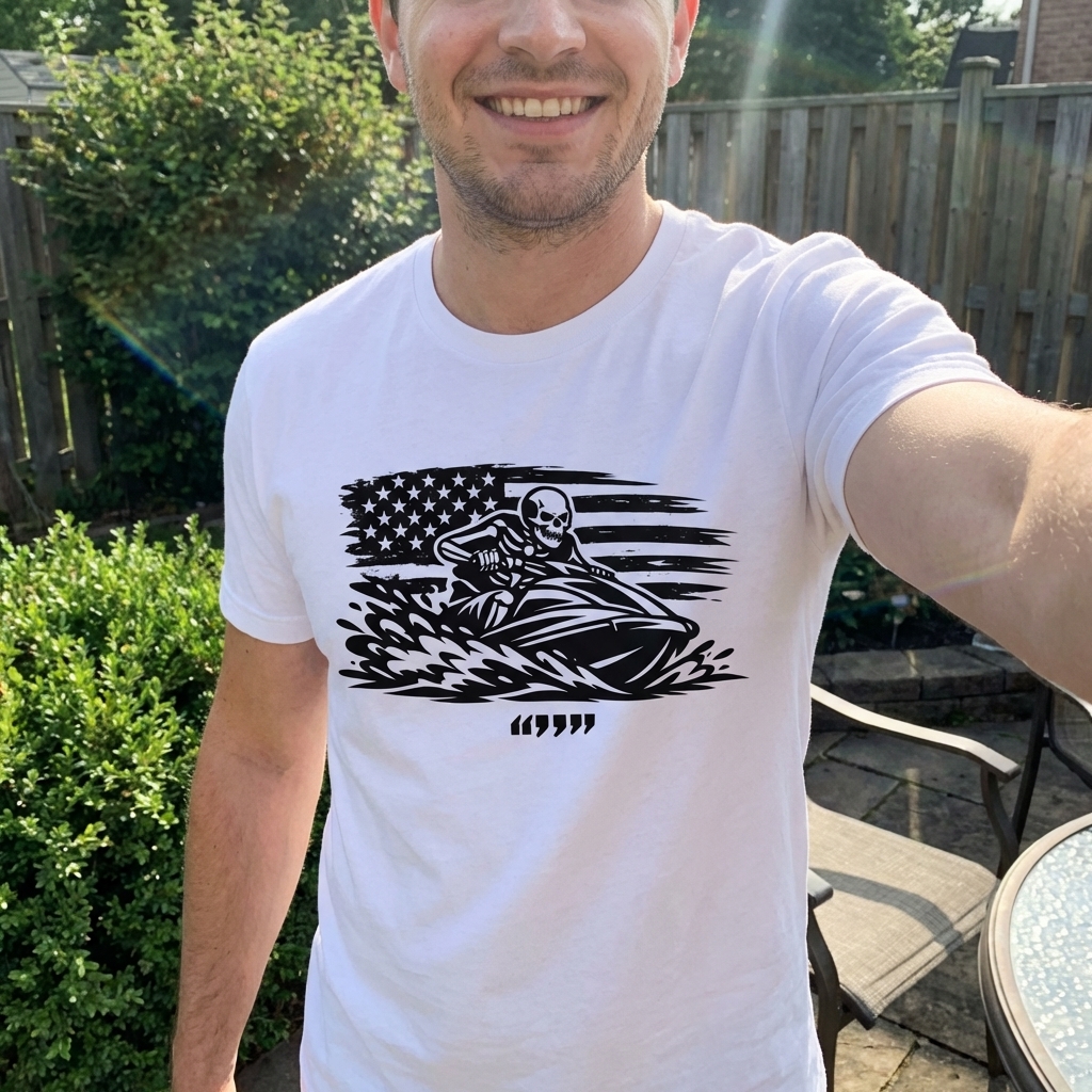 got this shirt and it's super comfy, material feels great. the patriotic skeleton design is really unique, definitely stands out without being too much. already my new favorite casual tee.