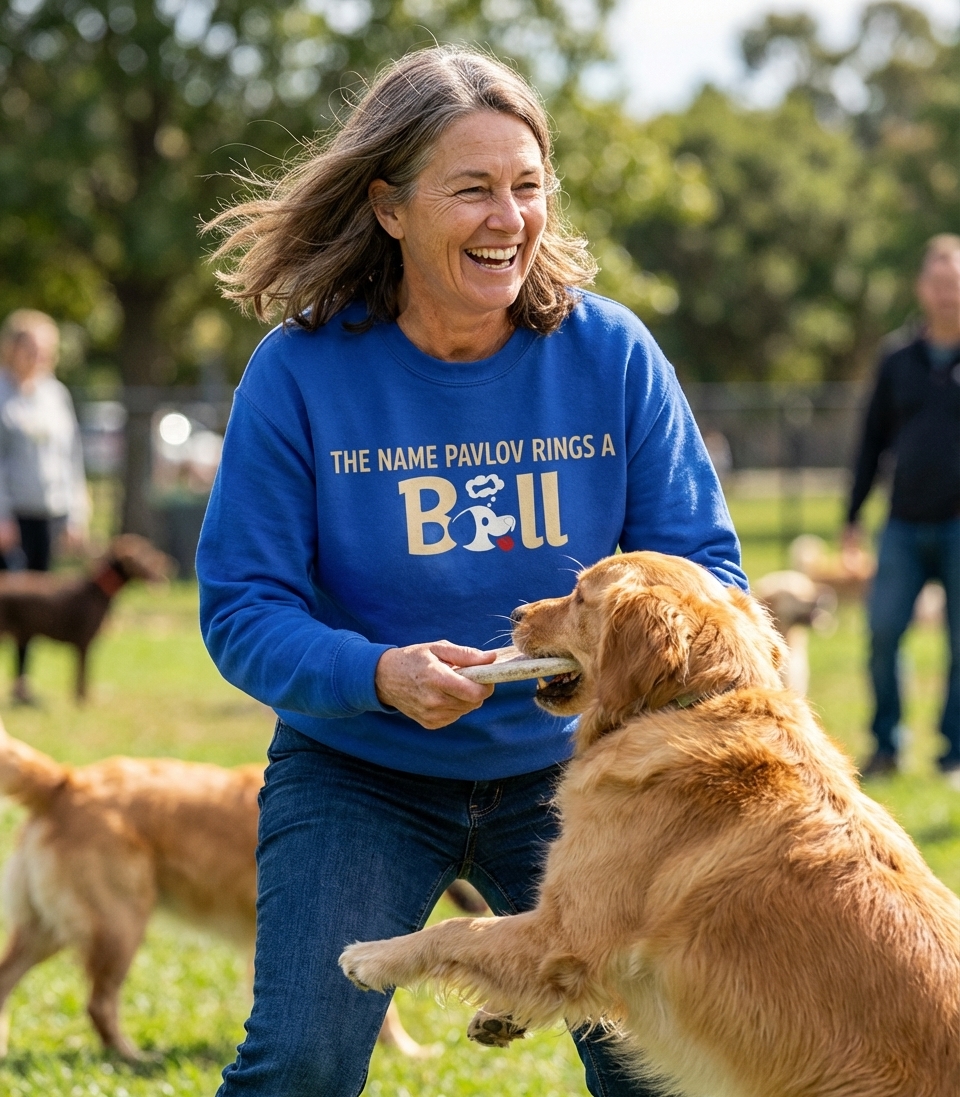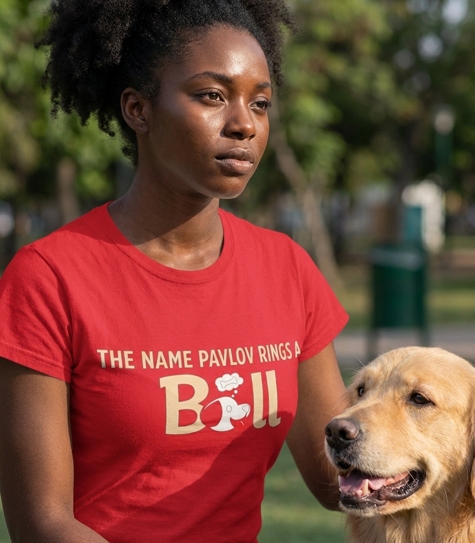 The "Pavlov Rings A Bell" phrase humorously captures the intellectual and animal-loving communities who appreciate psychological references, clever wordplay, and cute dog graphics.