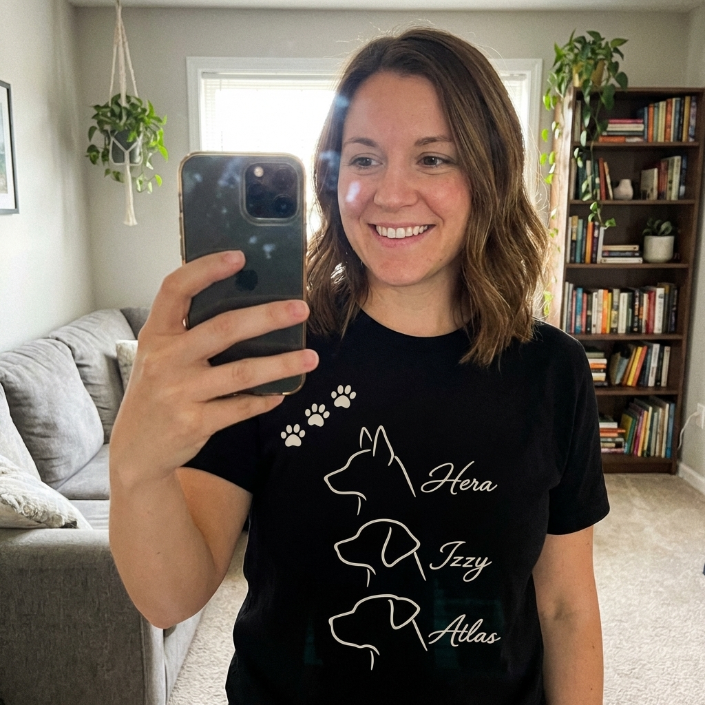 got my paw print names shirt today and wow, it's even cuter in person! the fabric is super soft, too, making it perfect for just lounging or walking the dog. definitely a new favorite.