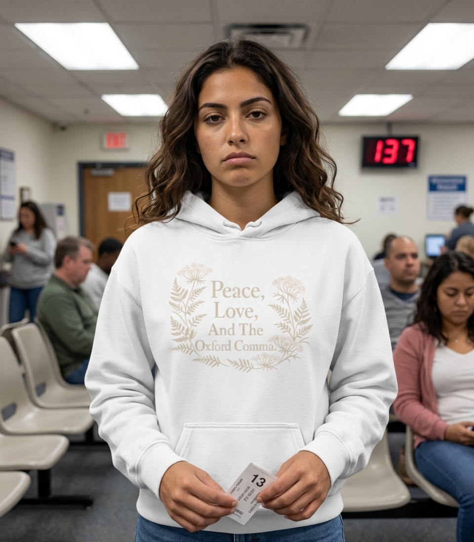 Peace Love Oxford Comma Hooded Sweatshirt
