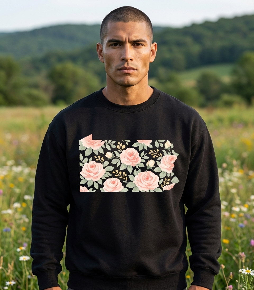 The visual phrase of the Pennsylvania map filled with roses signifies a deep love and pride for the state, combined with an appreciation for natural beauty and elegant floral artistry. It represents a connection to Pennsylvania's landscapes and its heartfelt charm.