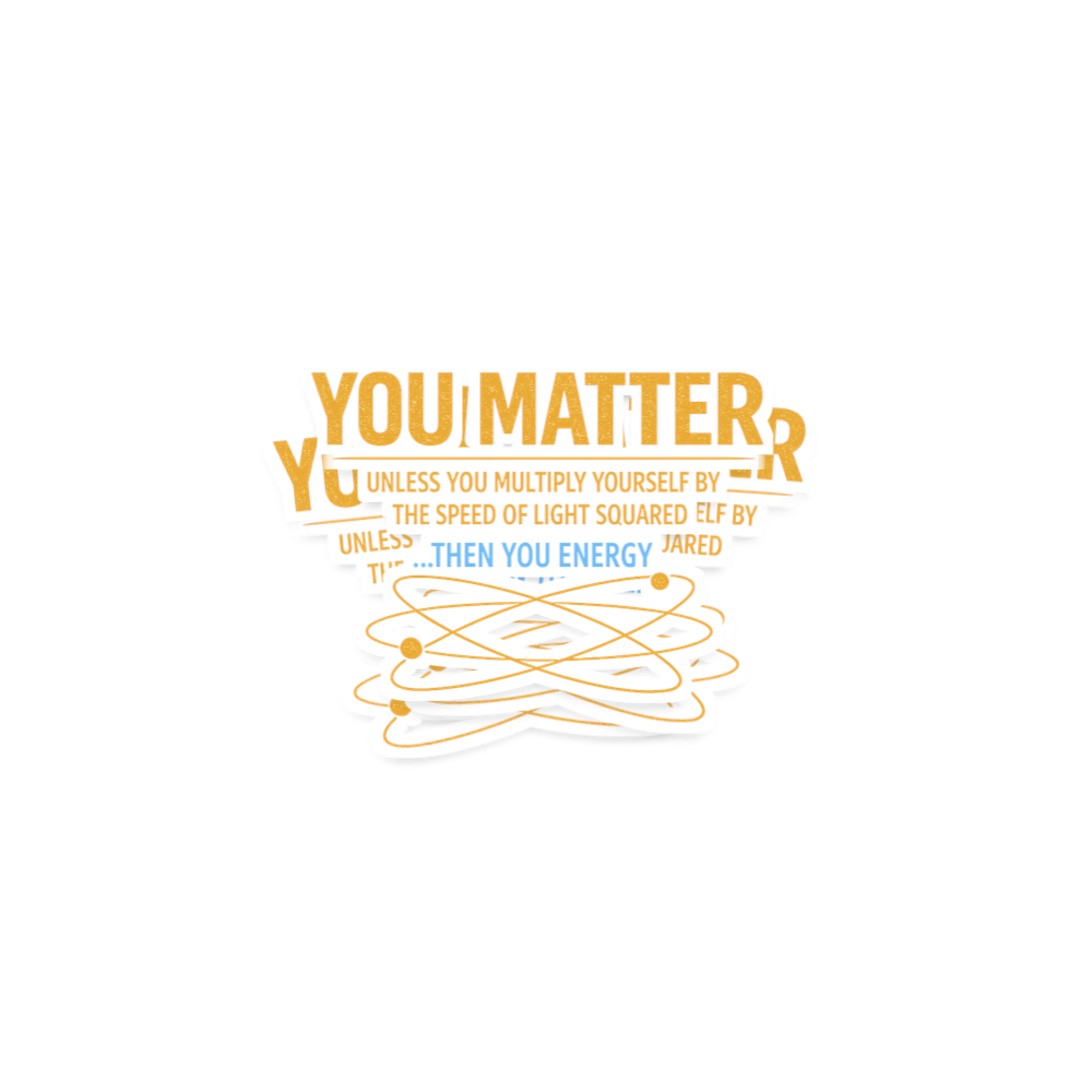 The 'You Matter Unless You Energy' phrase captures the clever spirit of science enthusiasts who appreciate witty physics jokes, atomic insights, and the fundamental laws of the universe.
