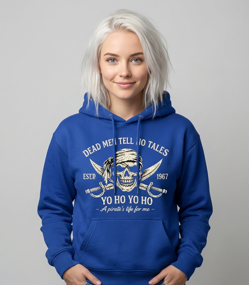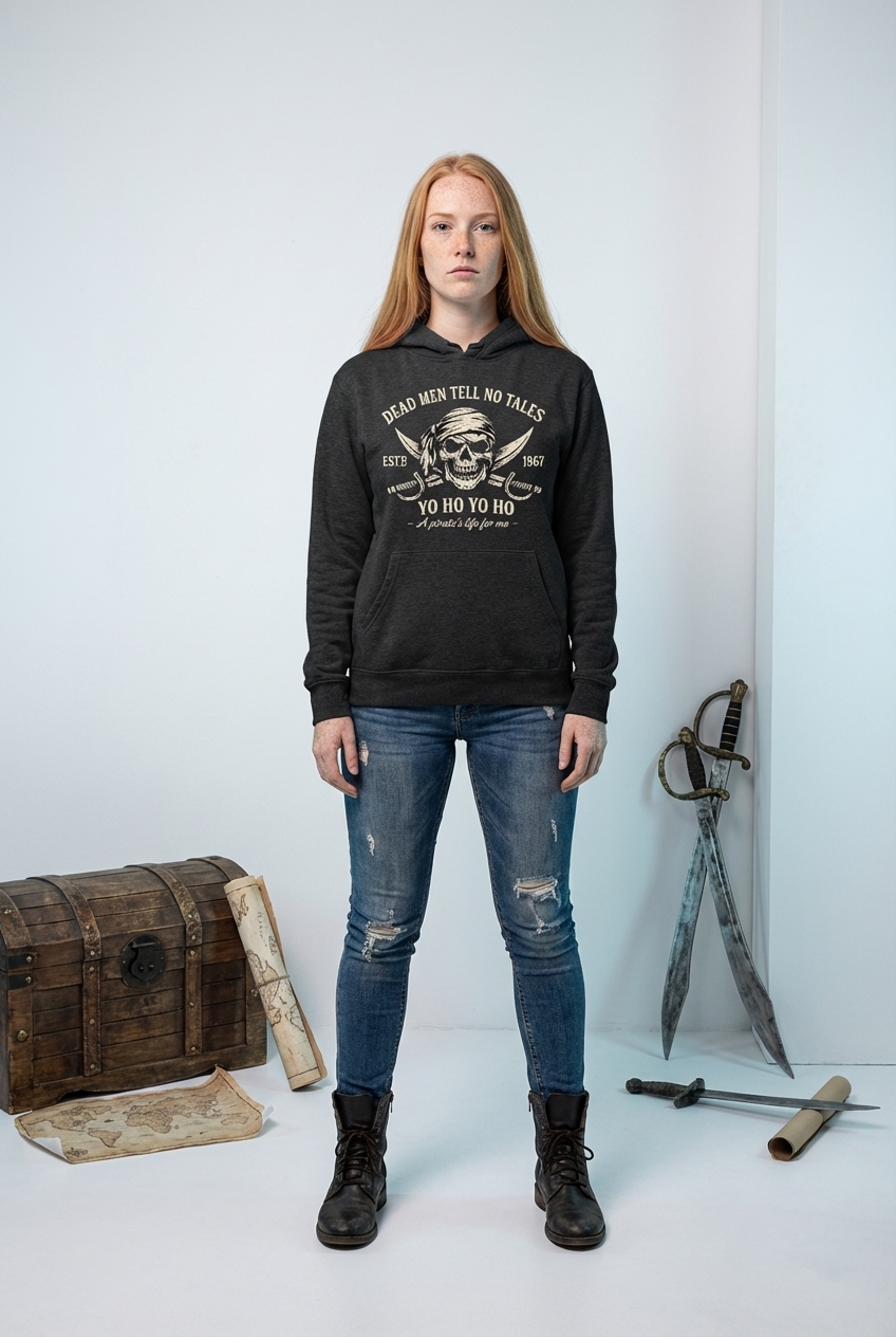 The "Dead Men Tell No Tales" phrase captures the lifestyle of adventurous pirate enthusiasts who enjoy maritime history, swashbuckling tales, and a life of freedom on the open sea.