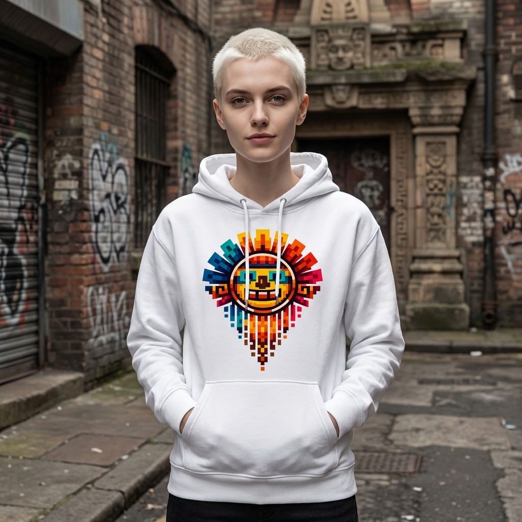 Pixel Aztec Sun Hooded Sweatshirt
