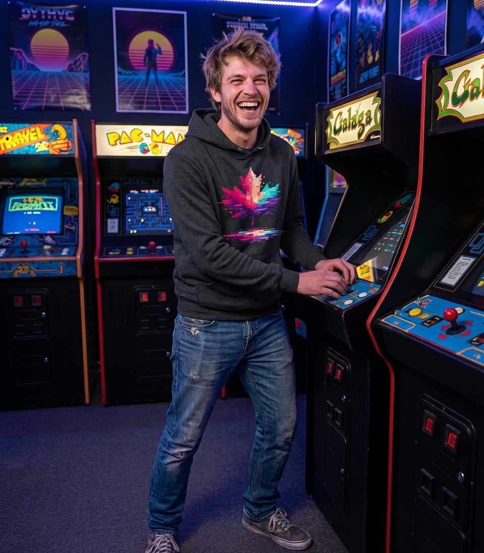 The digital aesthetic captures the lifestyle of retro gaming and synthwave enthusiasts who appreciate pixel art, vibrant color palettes, and unique graphic designs.