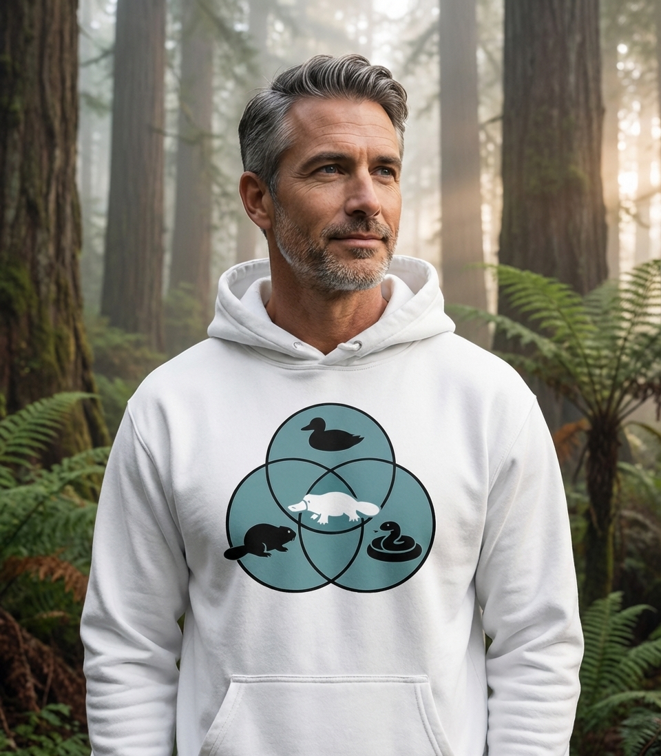 The visual phrase, represented by the Venn diagram, signifies the incredible biological anomaly that is the platypus. It’s a playful nod to how this creature baffled early naturalists with its seemingly contradictory features.