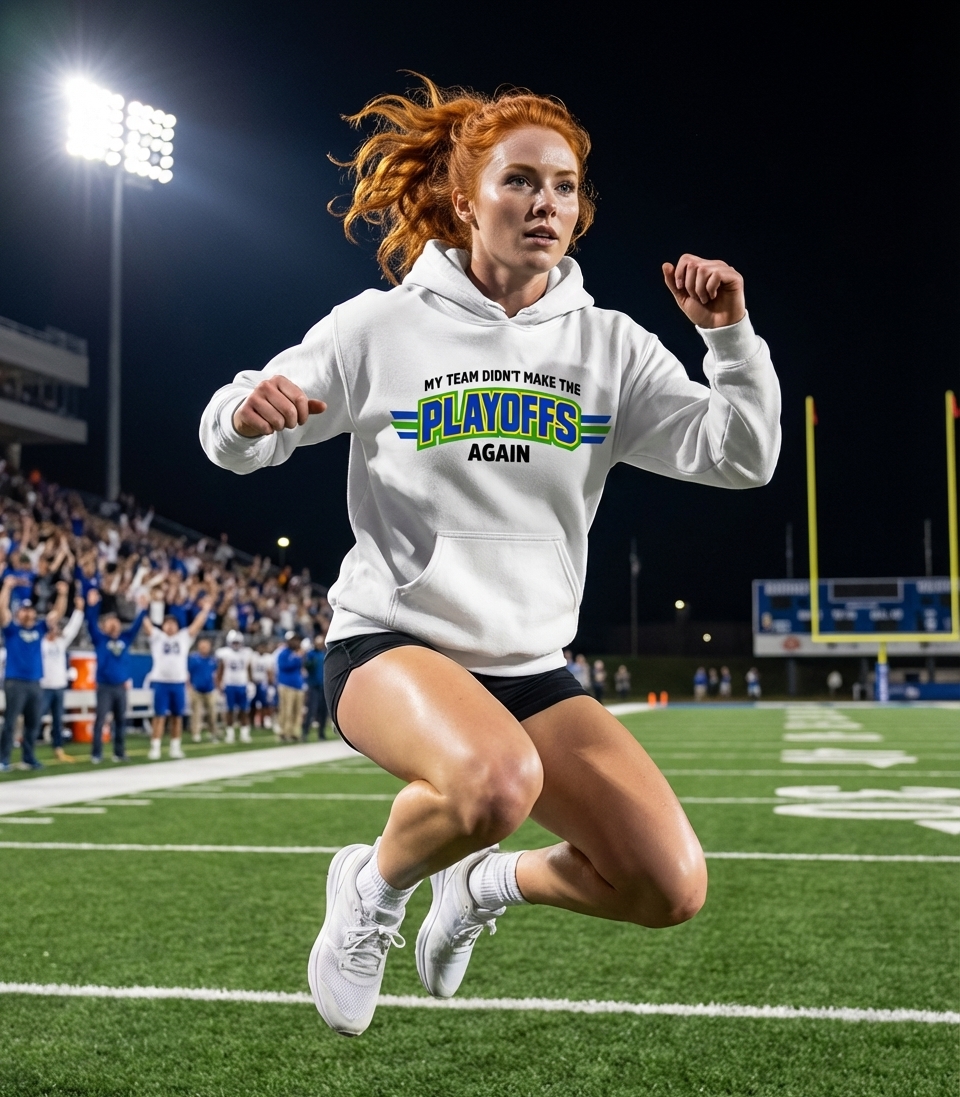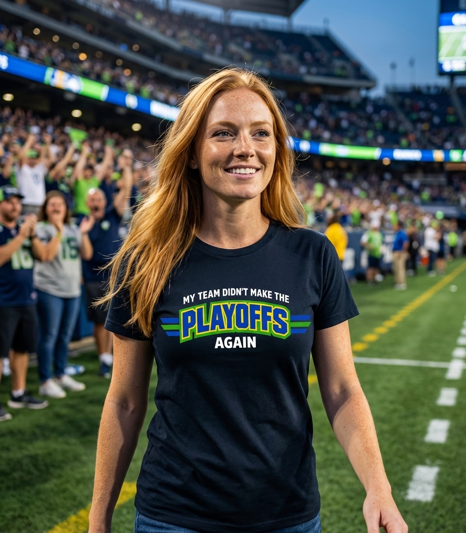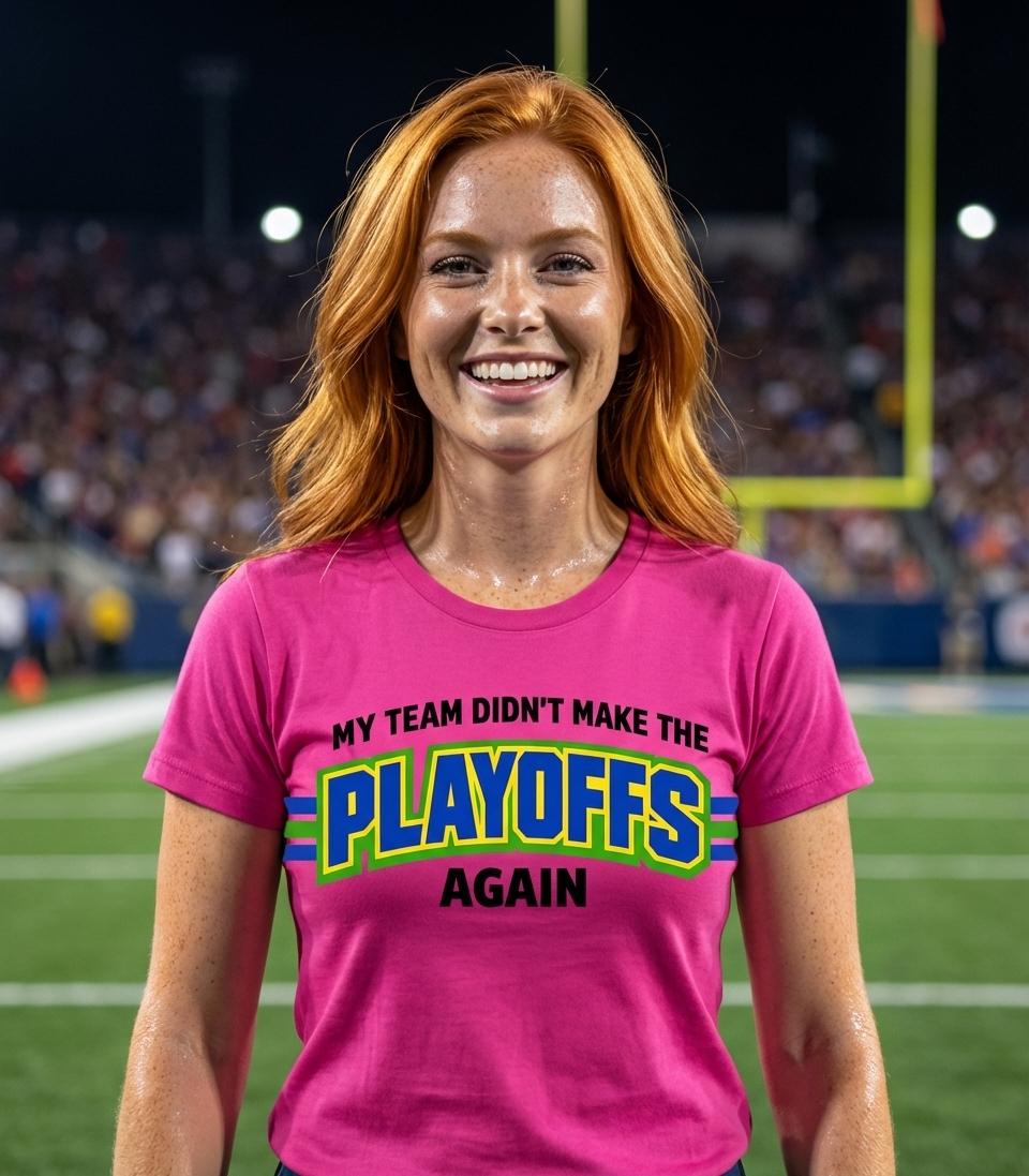 The "Playoffs" phrase captures the lifestyle of passionate sports enthusiasts who spend their days cheering for their team, tailgating, and anticipating championship victories.