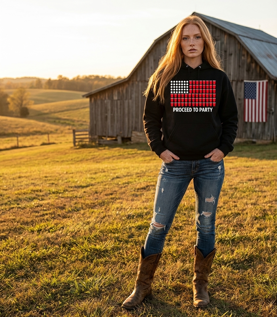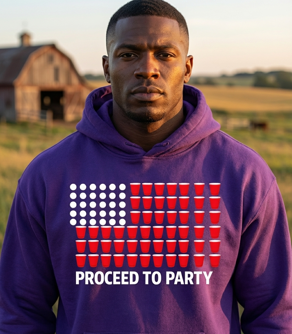 The 'Proceed To Party' design captures the vibrant spirit of individuals who celebrate national pride, enjoy festive gatherings, and live for summer fun.