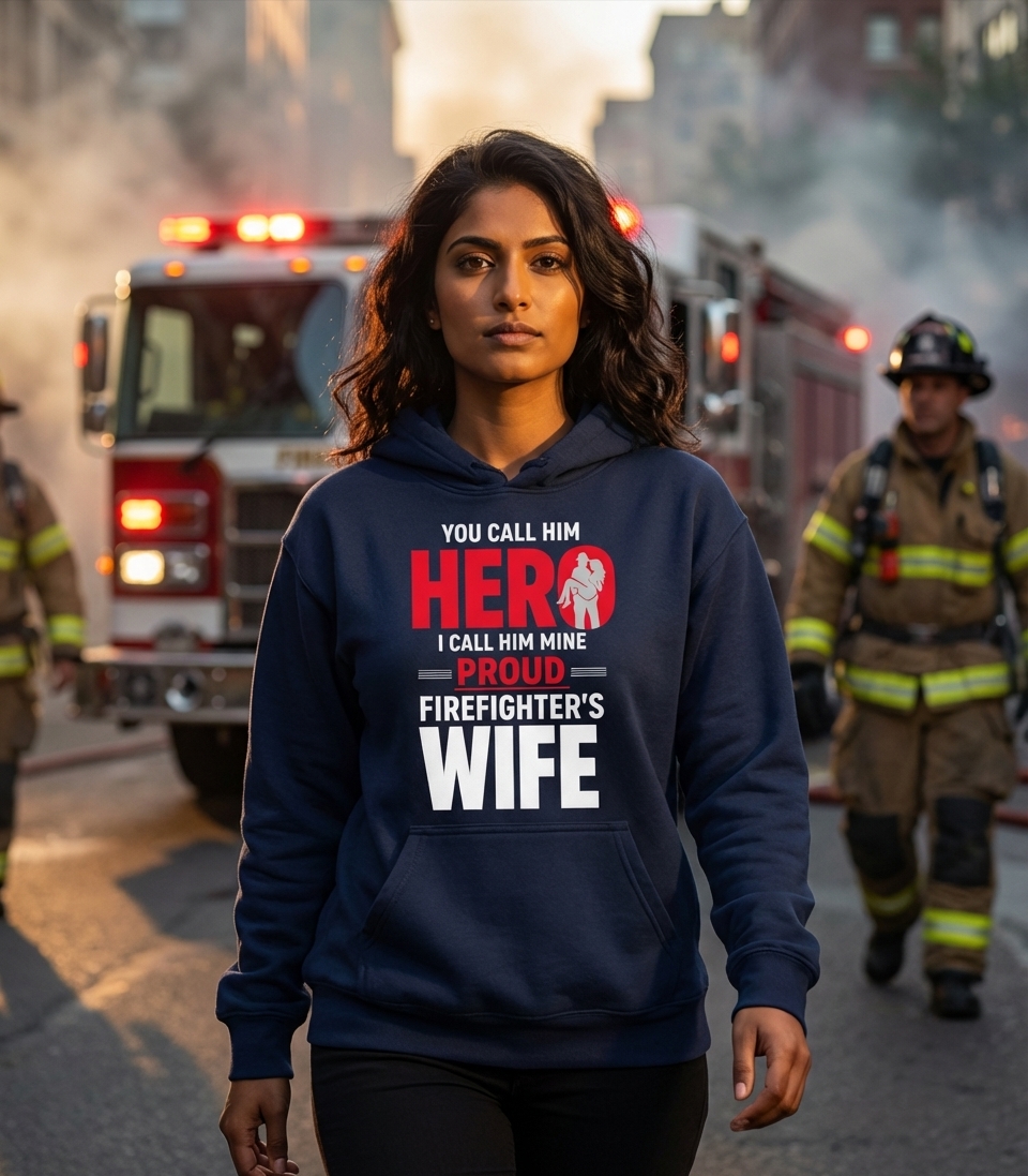 The 'Proud Firefighter's Wife' phrase captures the lifestyle of dedicated partners who stand by their heroes, support their communities, and celebrate acts of bravery.