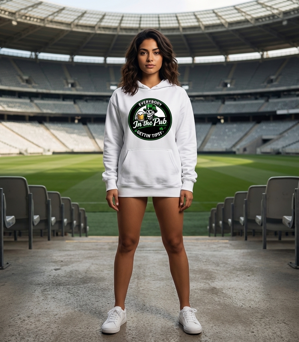The 'Everybody Gettin' Tipsy' phrase captures the lively spirit of St. Patrick's Day enthusiasts who enjoy pub crawls, sharing laughs, and celebrating Irish culture.