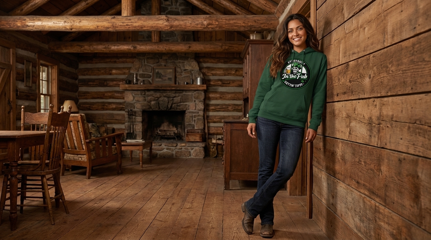The phrase 'Everybody In the Pub Gettin' Tipsy' is a cheerful declaration of the typical St. Patrick's Day celebration. It refers to the communal joy of friends gathering in a pub, enjoying drinks, and embracing the festive spirit. The term 'tipsy' implies a state of mild inebriation, characteristic of a fun and relaxed holiday gathering.