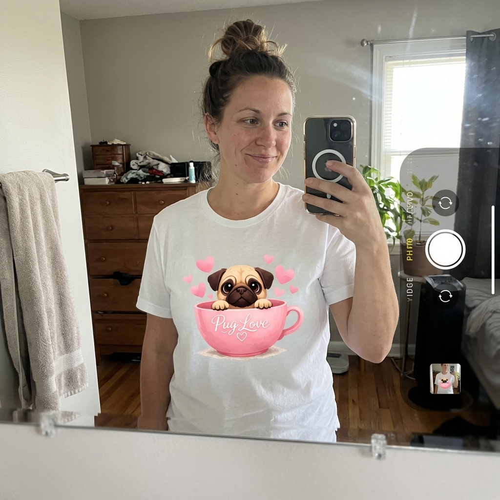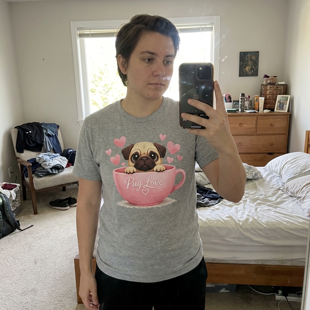 OMG this pug tee is just what I wanted, the design is even cuter in real life! It's so soft and the fit is perfect, seriously comfy. Definitely a new favorite for chilling out.