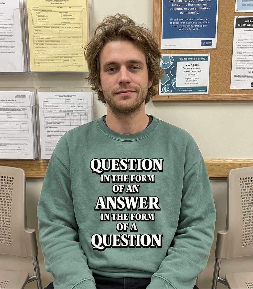 This minimalist graphic tee features a profound textual paradox. It presents a statement that is both a question and an answer, cleverly designed to engage the mind and provoke thought.