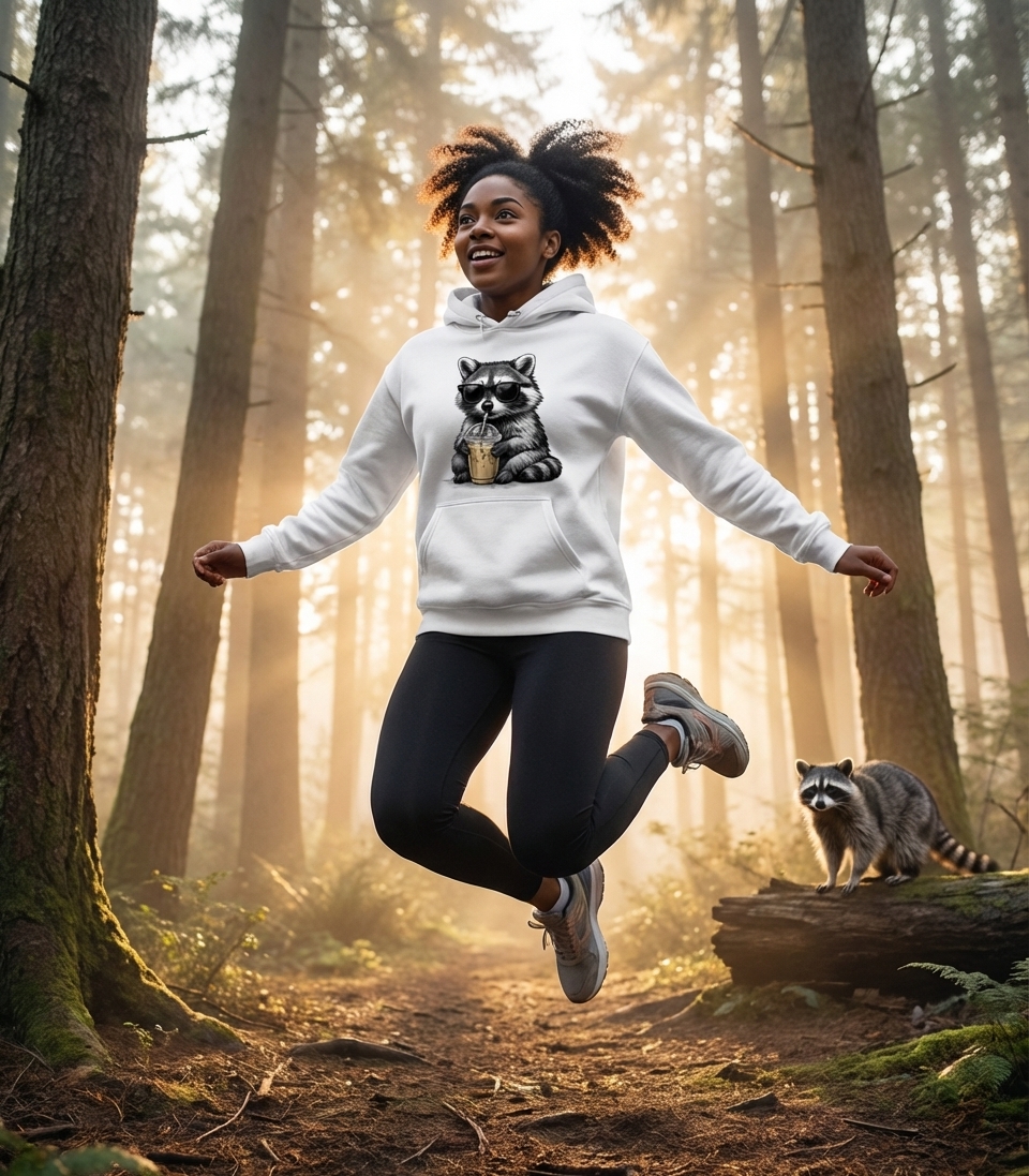 The "Raccoon Iced Coffee" phrase captures the lifestyle of cool, calm individuals who enjoy their daily caffeine fix with a touch of playful wildness.
