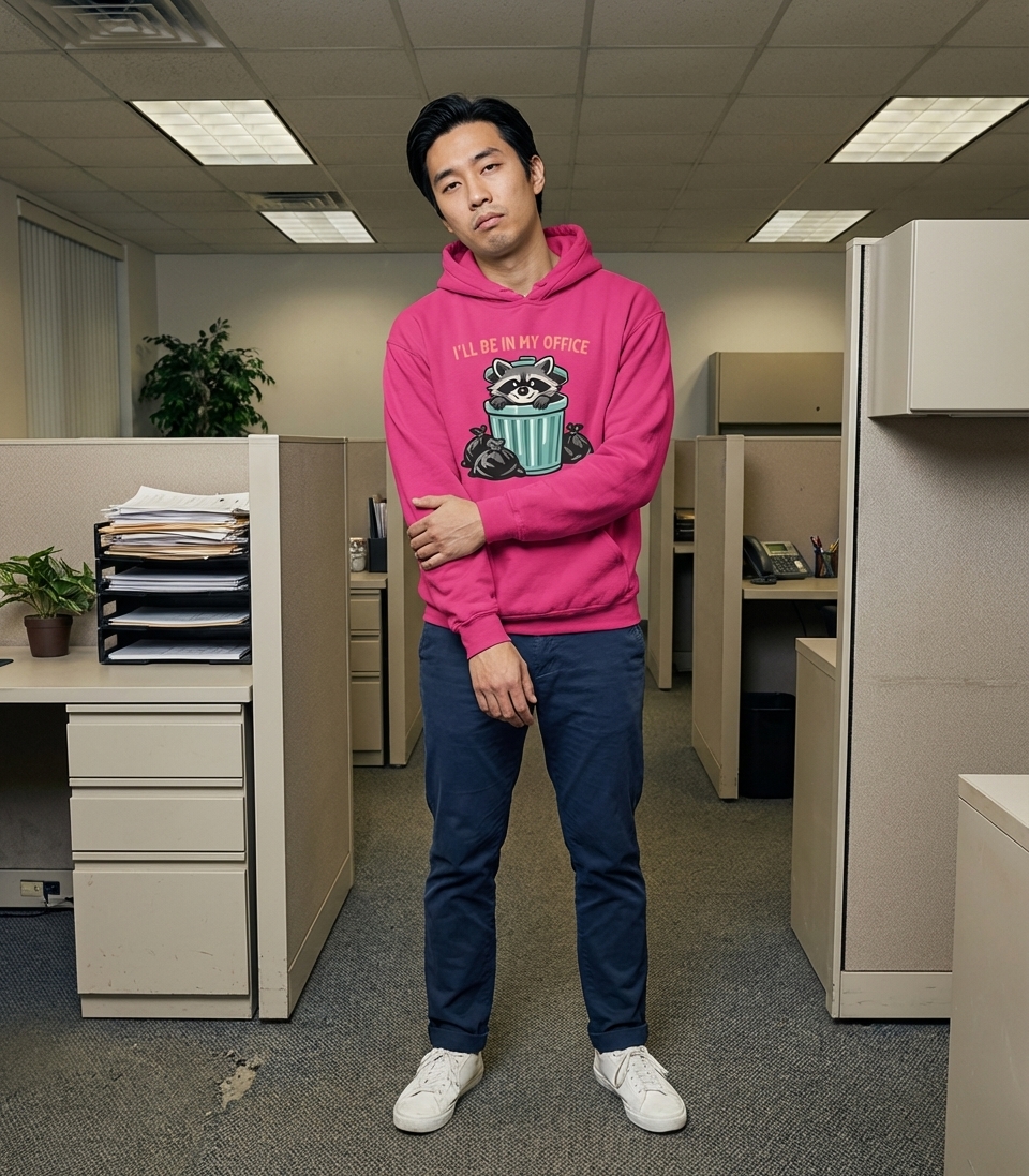 Yes! Check the style selector above to see all available options including hoodies and sweatshirts for the Raccoon My Office Humor graphic.