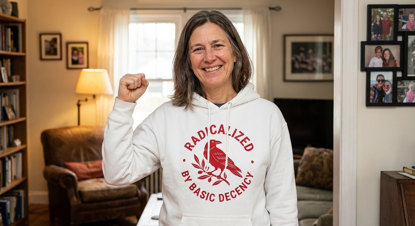 The 'Radicalized By Basic Decency' phrase captures the lifestyle of principled individuals who advocate for empathy, truth, and fundamental human rights.
