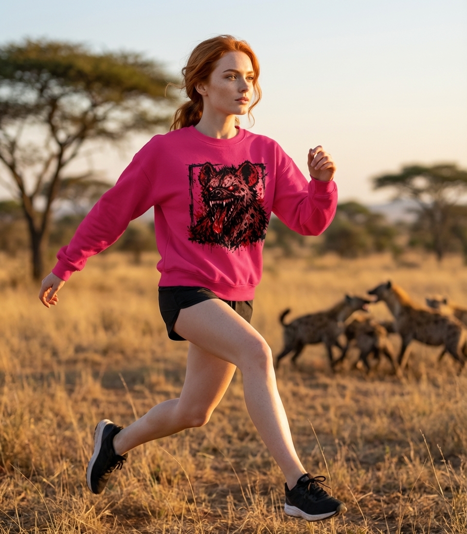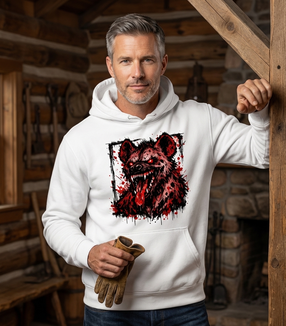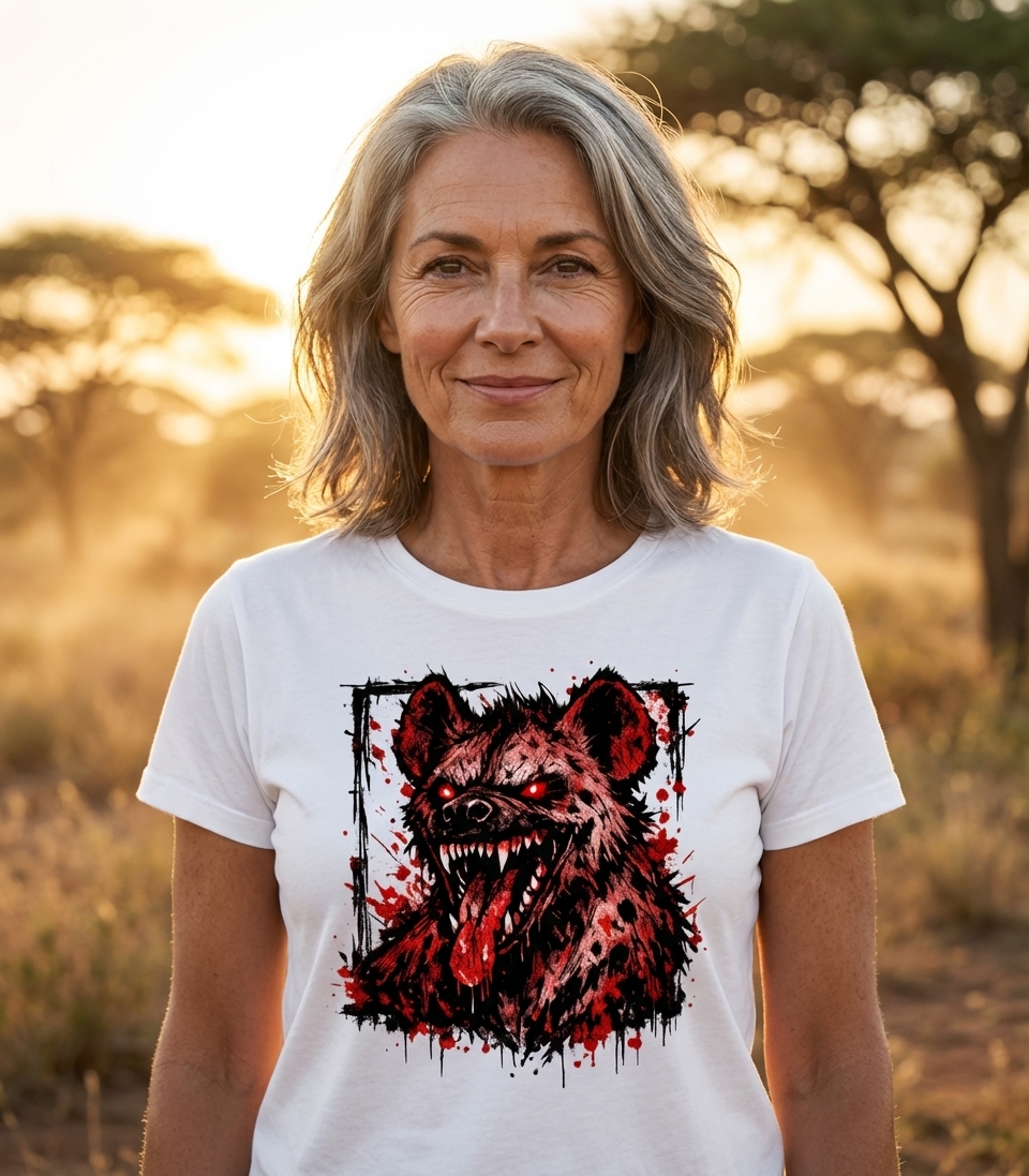 This graphic of a snarling hyena captures the intensity of predatory wildlife, perfect for enthusiasts who appreciate fierce animal artwork and dark, visceral aesthetics.