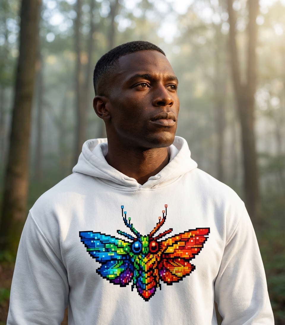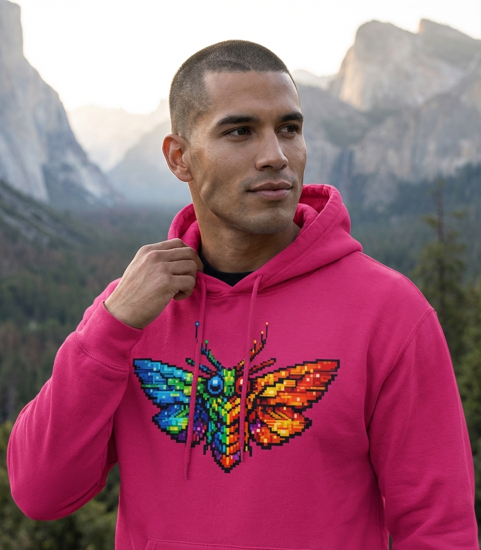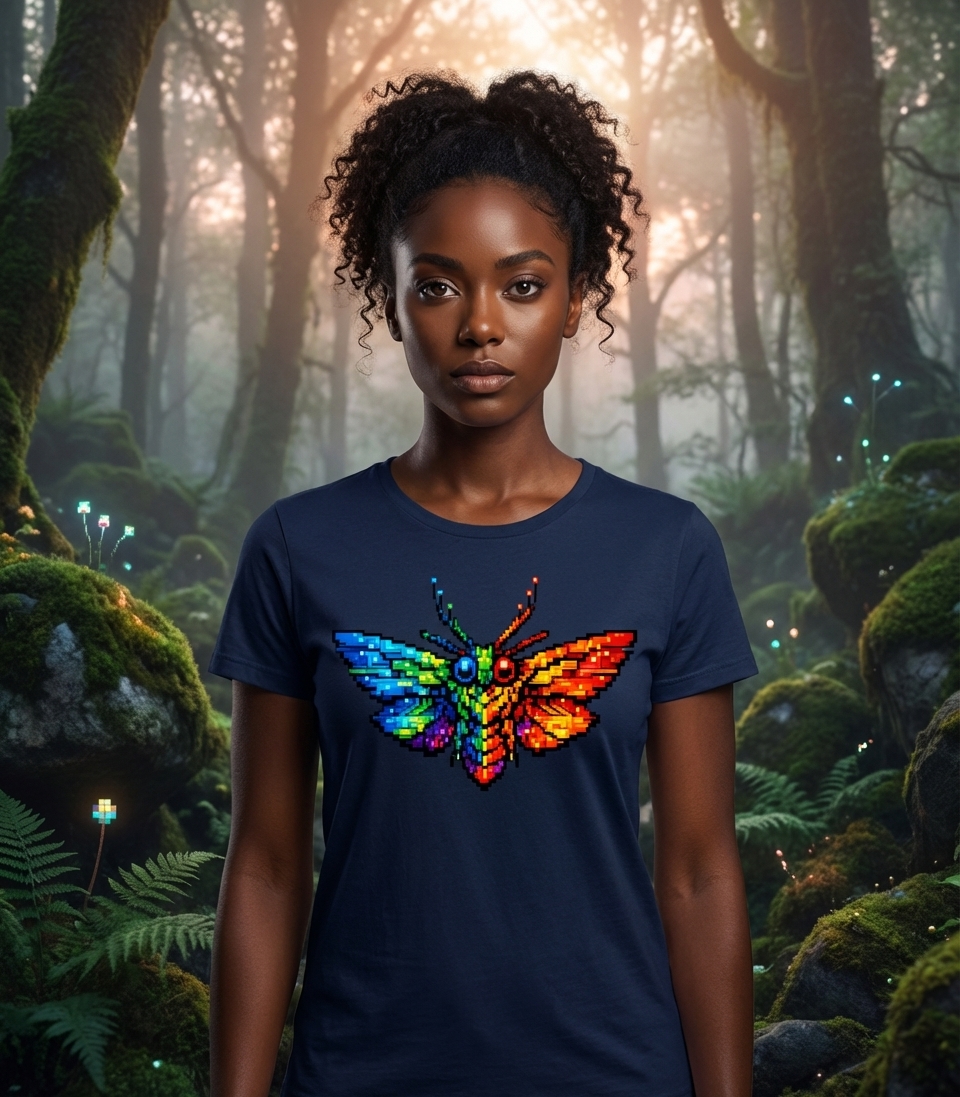 This pixel art moth design captures the vibrant energy of nature enthusiasts and gamers alike who appreciate colorful, retro aesthetics.