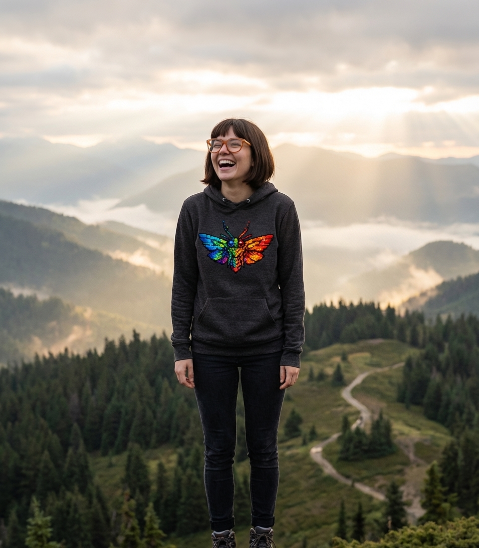 Rainbow Pixel Moth Hooded Sweatshirt