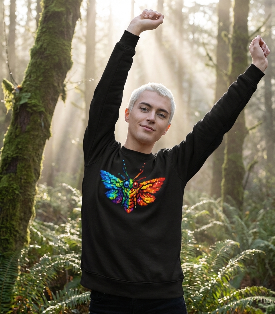 Yes! Check the style selector above to see all available options including hoodies and sweatshirts for the Rainbow Pixel Moth graphic.