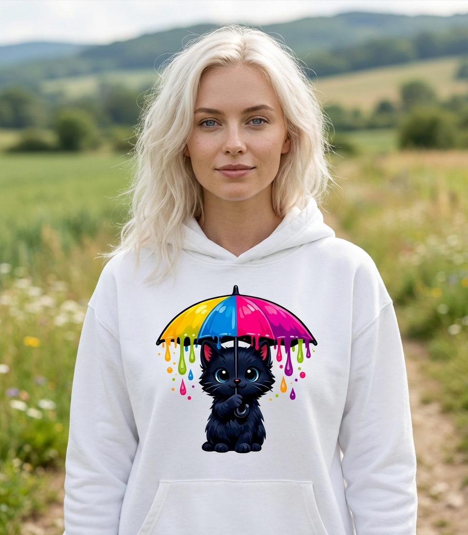 Rainbow Umbrella Cat Hooded Sweatshirt