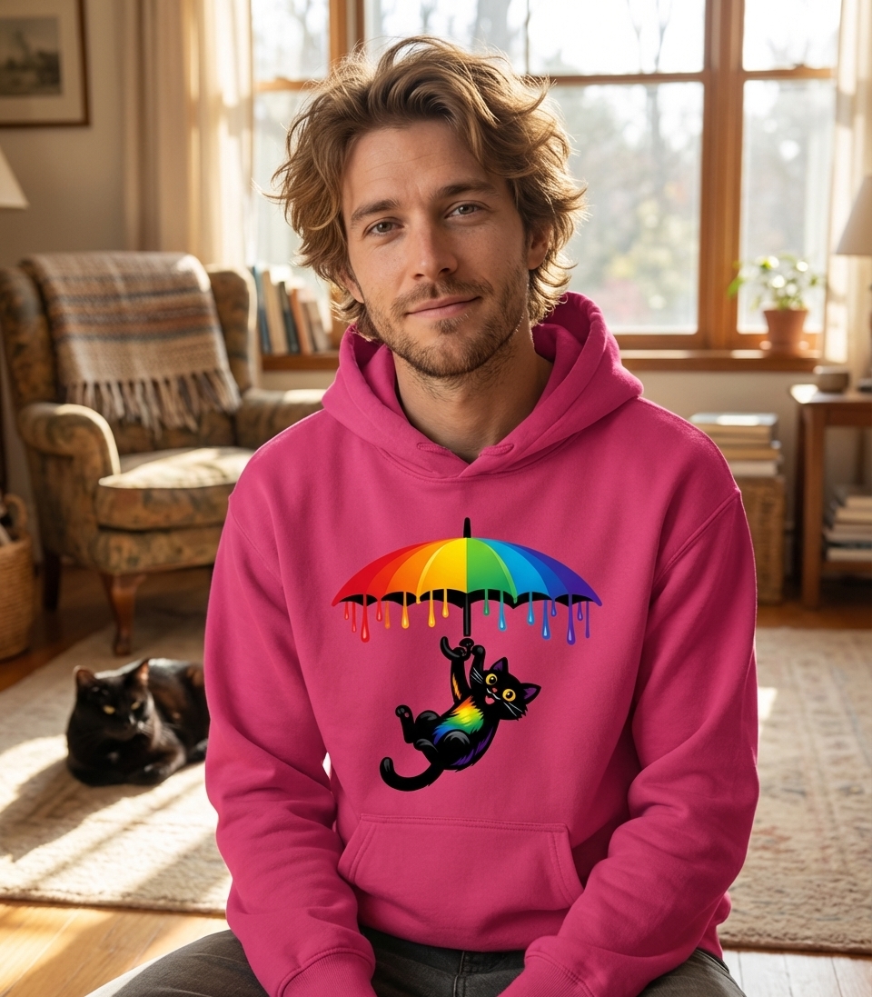 Rainbow Umbrella Cat Hooded Sweatshirt