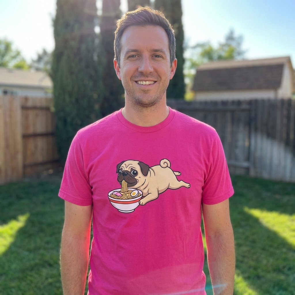 Obsessed with this shirt! The "Ramen Pug Sploot" design is just too cute and honestly always makes me smile. It's super soft too, definitely a new go-to for chill days.