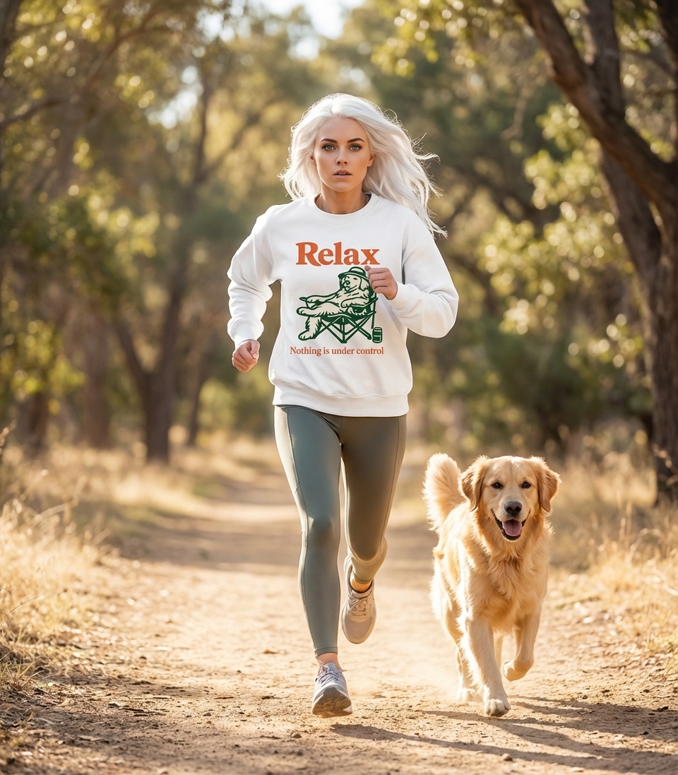 This design captures the lifestyle of laid-back dog lovers who embrace a humorous, zen approach to life's unpredictable moments.