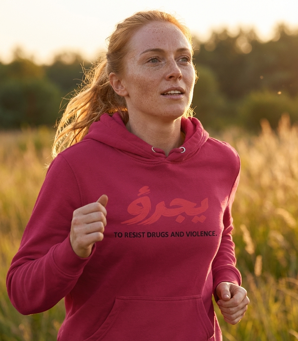 The Arabic script, when combined with the English text, conveys a message of liberation and resistance. It stands as a motto for those committed to overcoming and preventing the harms of drugs and violence in their communities and personal lives. The phrase serves as a reminder of strength and collective determination.