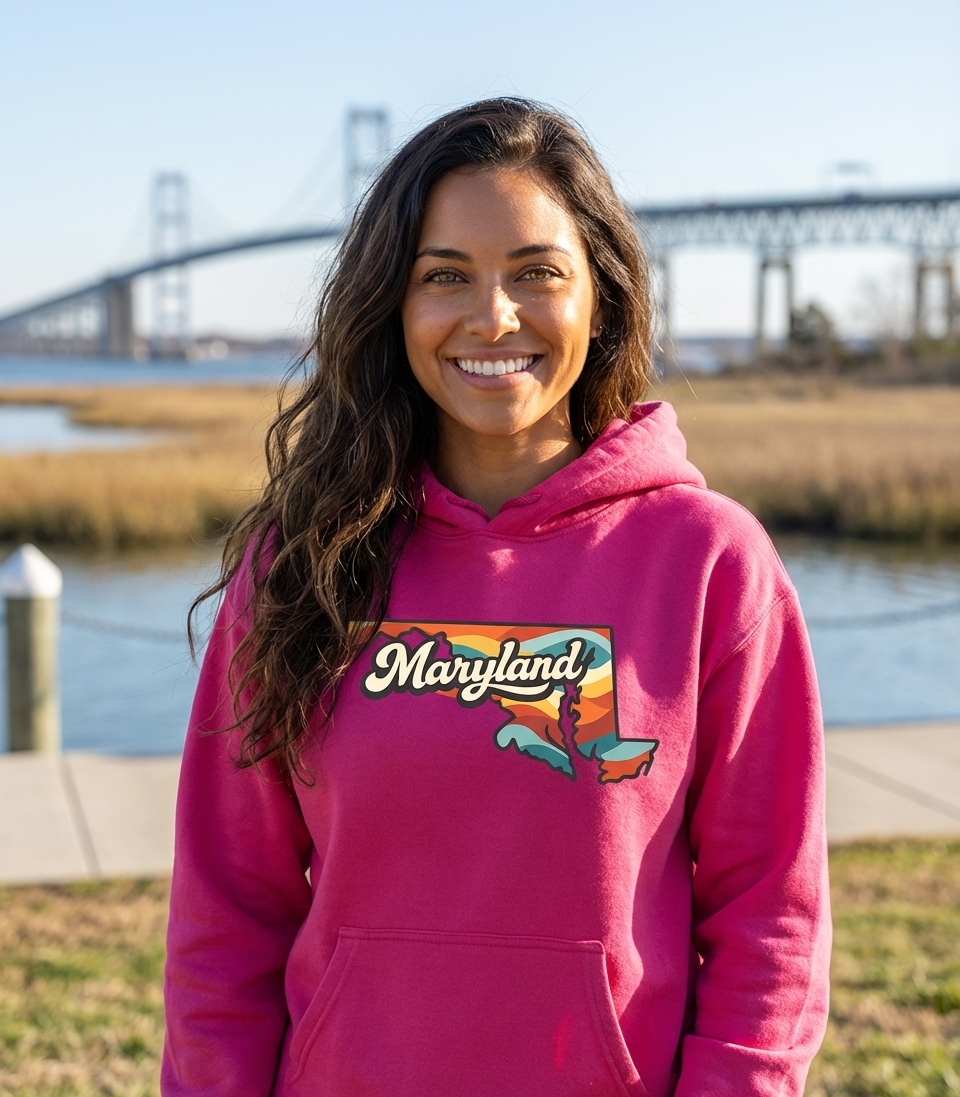 This unique design captures the vibrant spirit of Maryland residents who celebrate their state's charm, heritage, and scenic beauty.